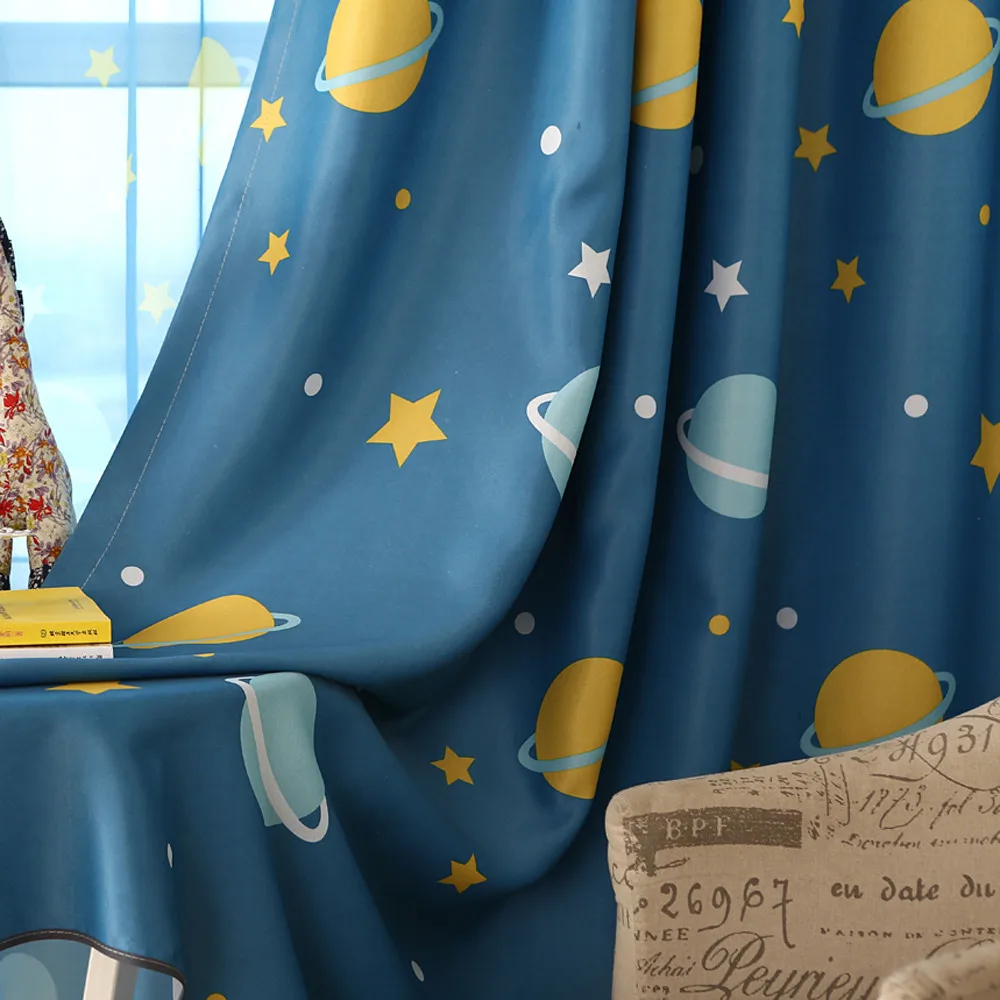 Blue Planet Boys Blackout Curtains for Baby's Bedroom Custom Size Kitchen Window Door Blinds Polyester Fabric Living Room