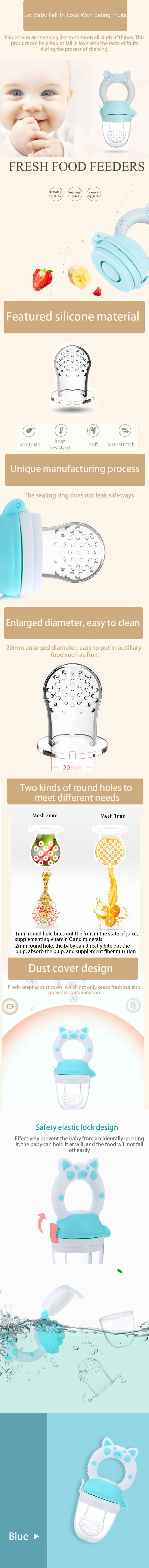 Blue Silicone BPA Free Material Baby Infant Teething Toys Food Fresh Fruit Feeder Pacifier