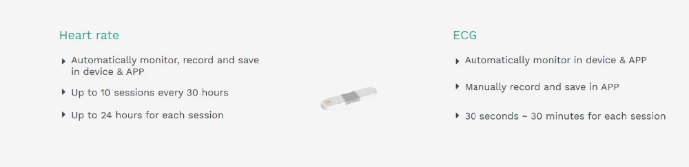 7> Real-time & Long-term:  Real-time tracking; heart rate up to 24 hours / ECG up to 30 minutes for each session