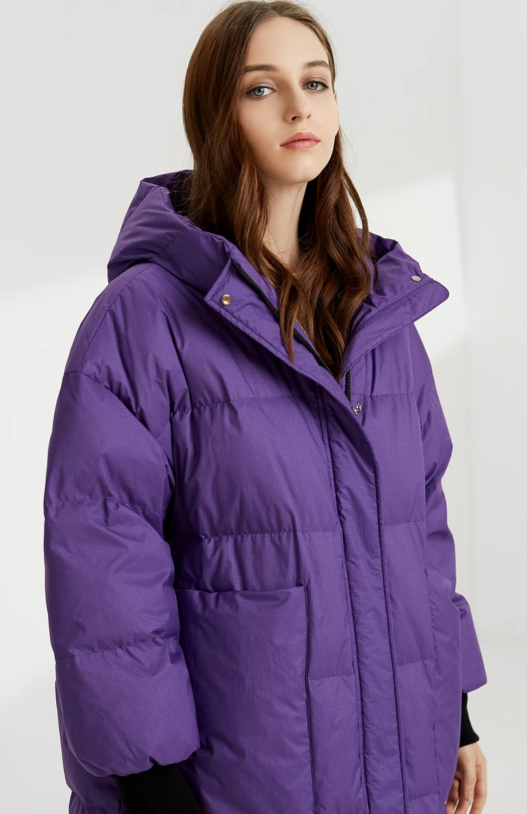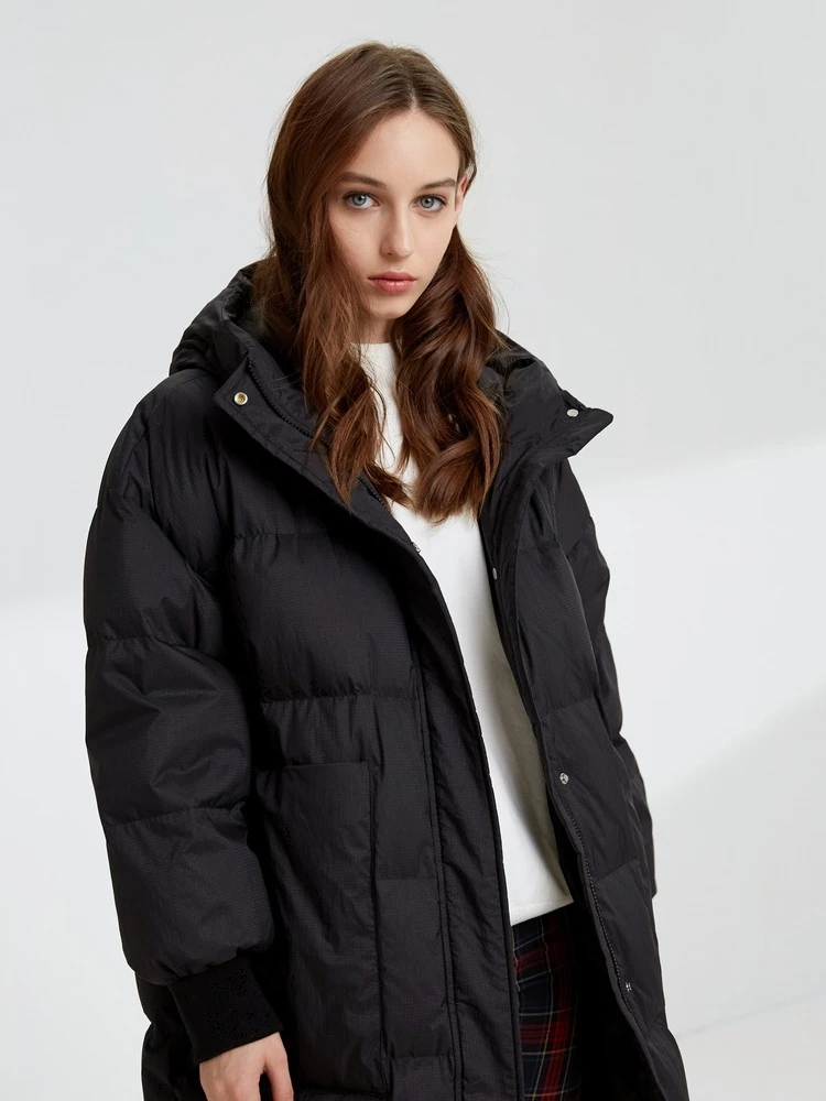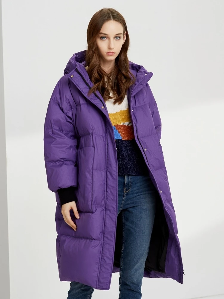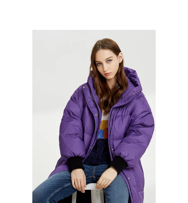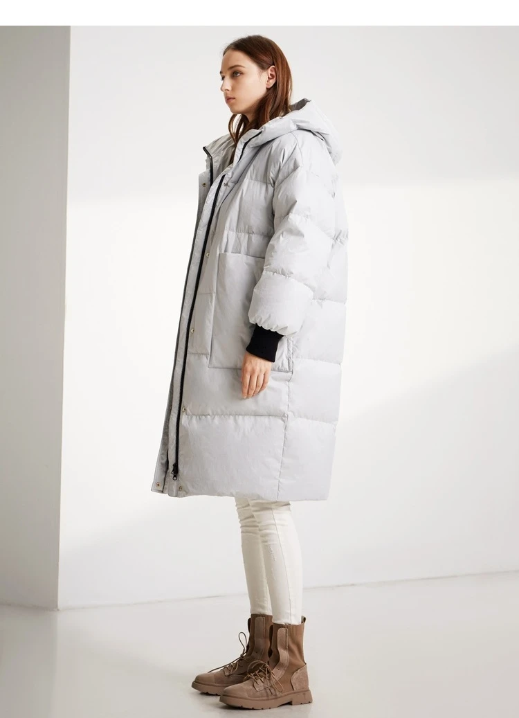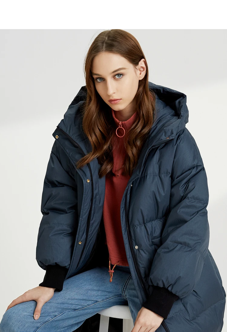 BOSIDENG New long down jacket fashionable warm and cold proof hooded women down jacket X-Long loose thicken warm B90141542DS