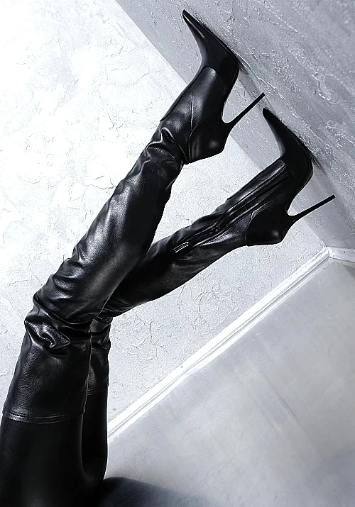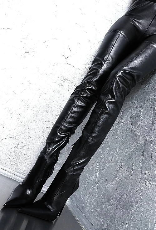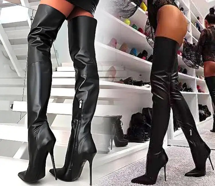 Botas mujer invierno black women shoes thigh high heel bota over the knee boots pointed toe long female motorcycle plus size47