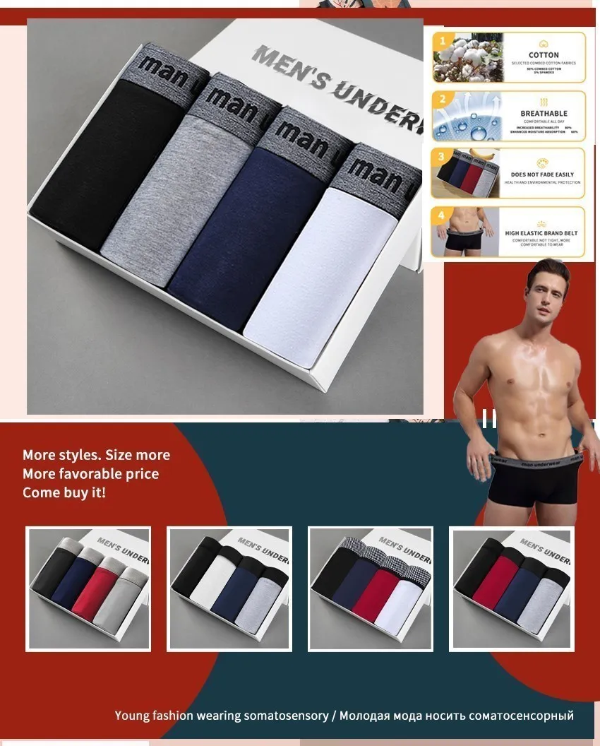 Boxer Mens Underwear Men Cotton Underpants Male Pure Men Panties Shorts Underwear Boxer Shorts Solid Cuecas 365 Calzoncillos