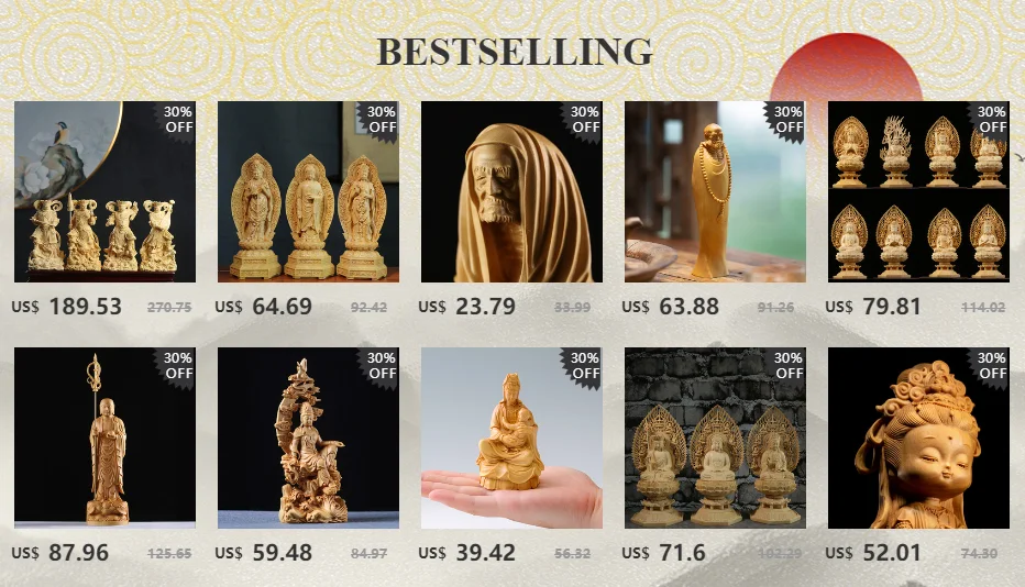 Boxwood 29cm Three Buddha Sculpture Sakyamuni Figure Guanyin Wood Carving Goddess Statue Home Decor