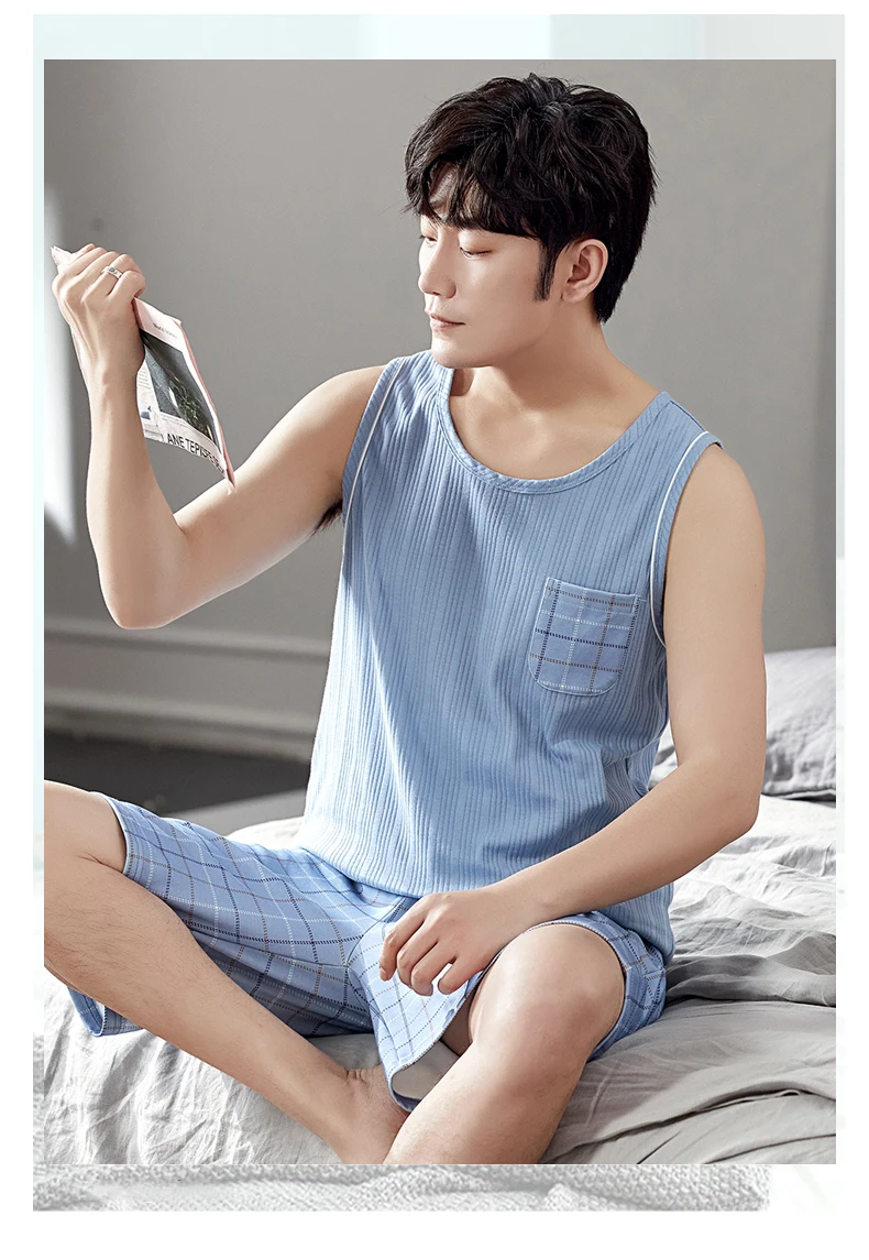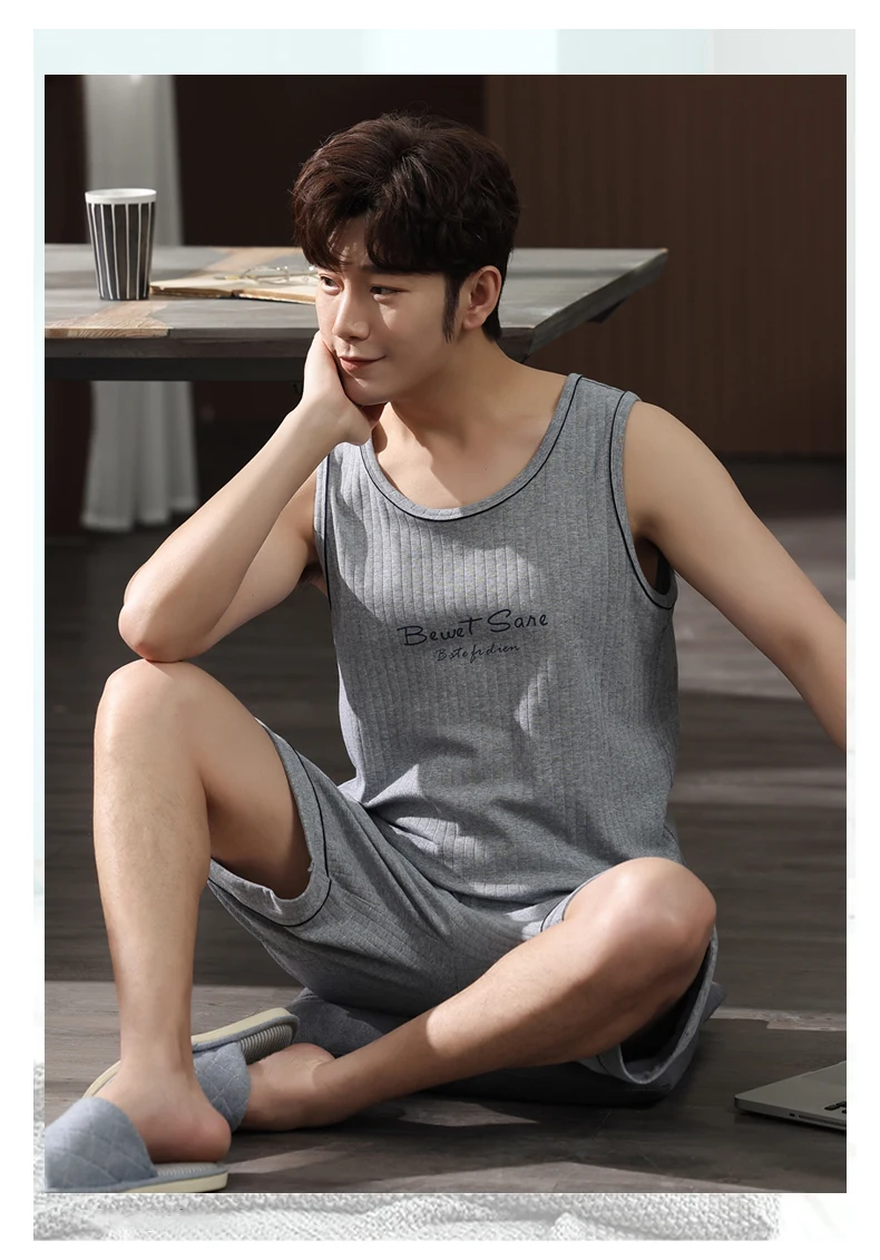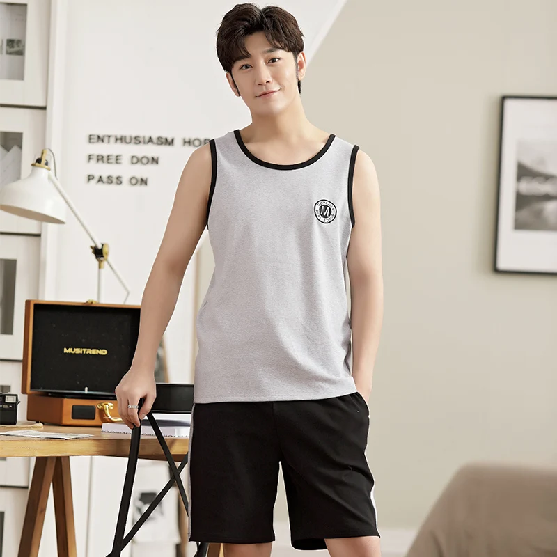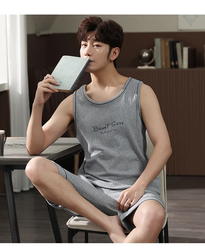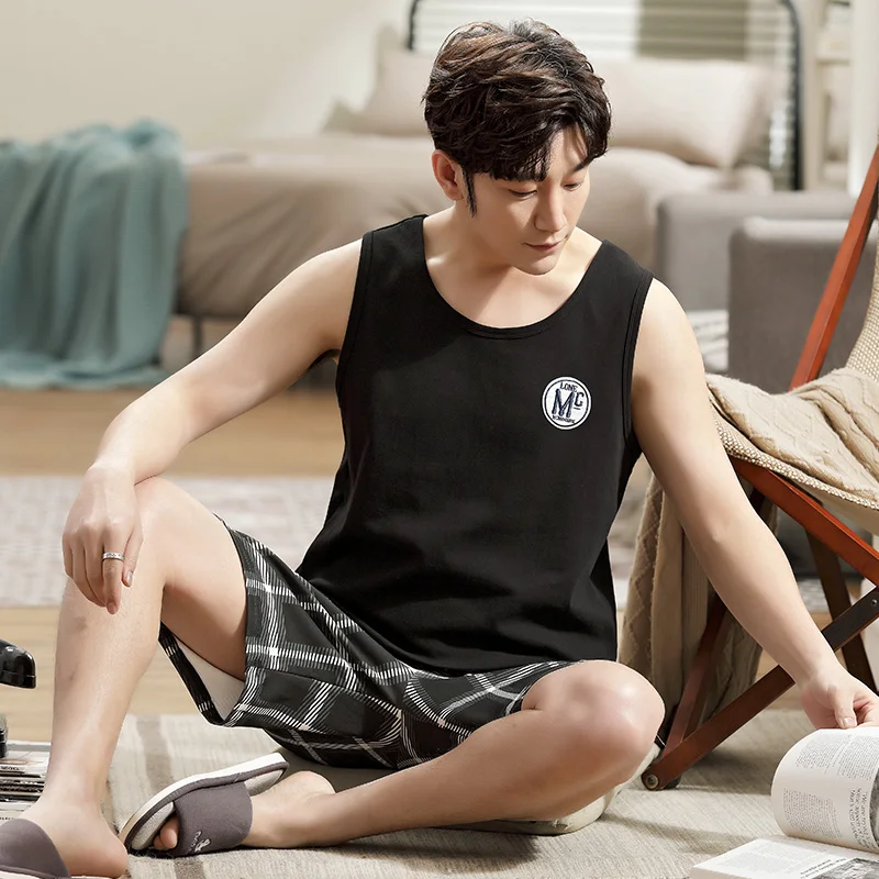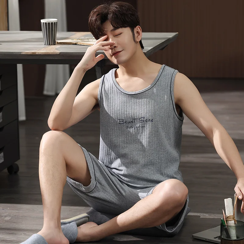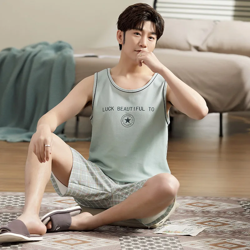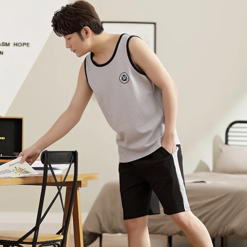 Boy Male Vest Pants Pajamas Sleeveless Vest Pant Pyjamas Undershirt Sleepwear Nightwear Elastic Waist Man's Jams 6535 Cotton HDE