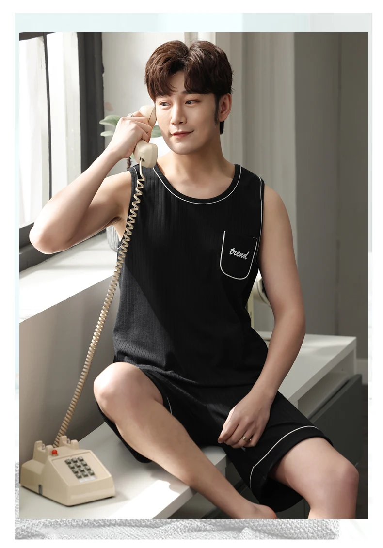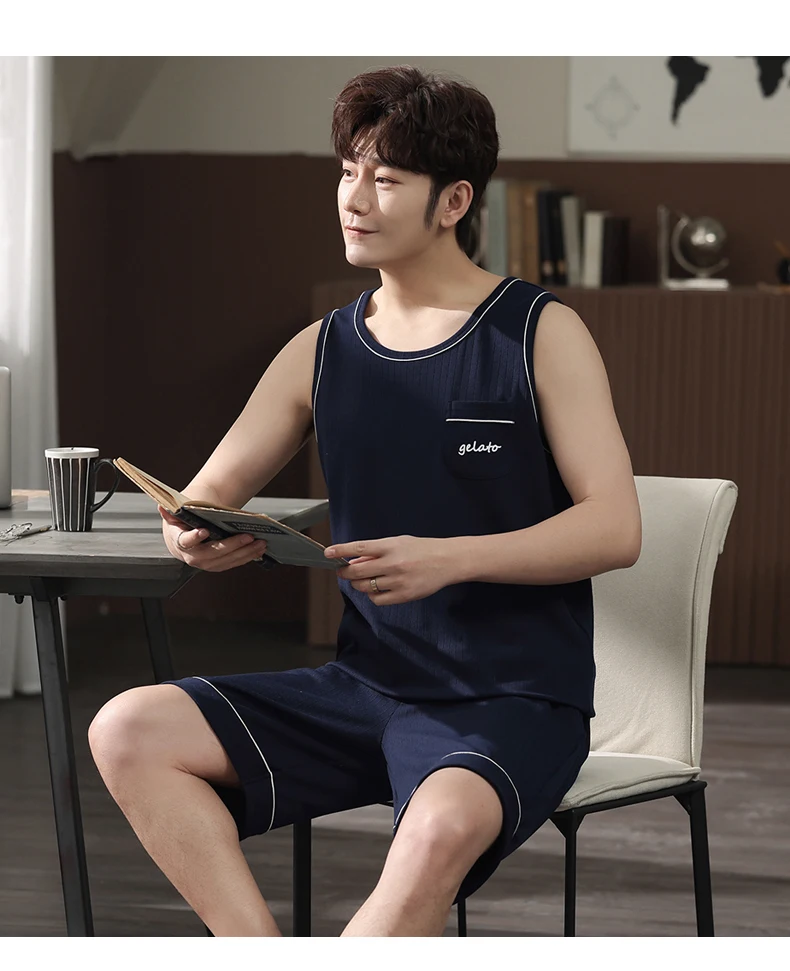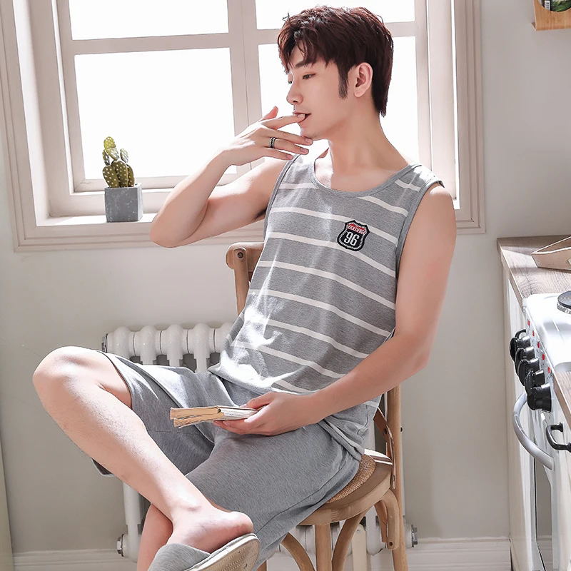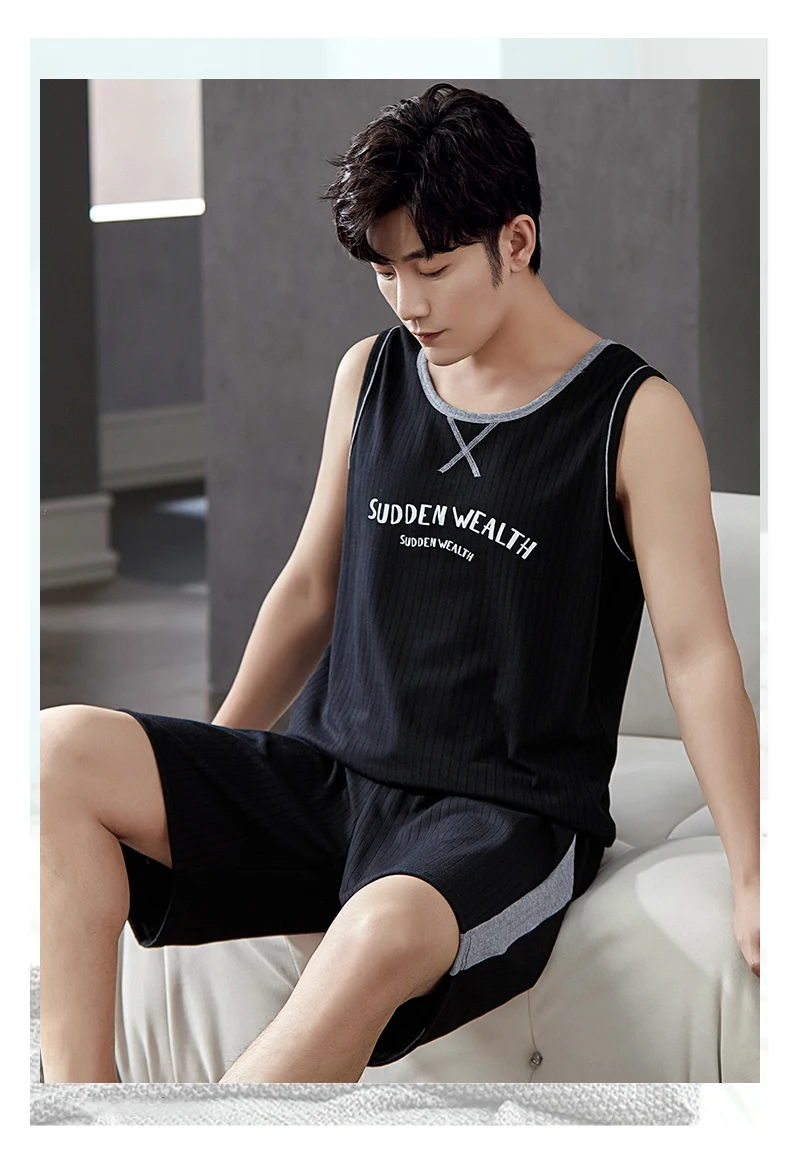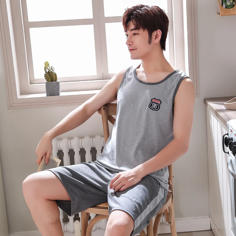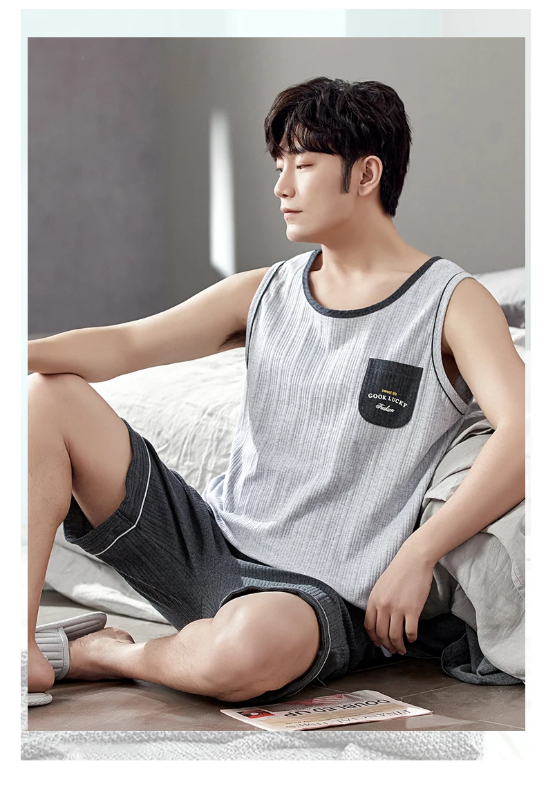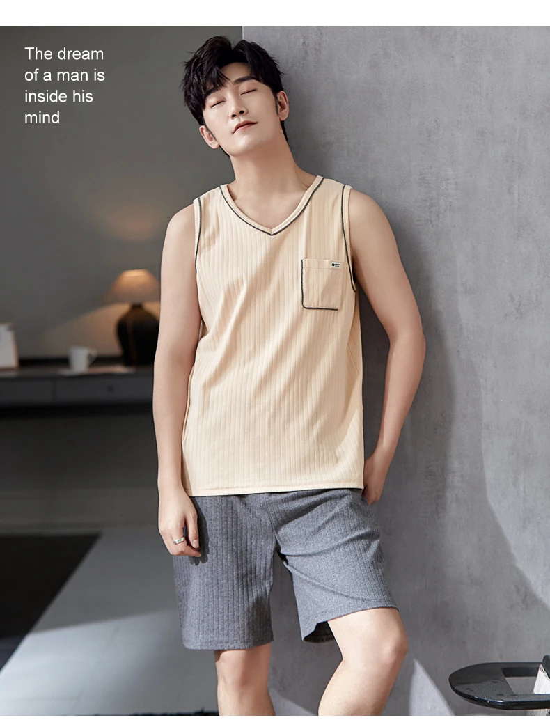 Boy Male Vest Pants Pajamas Sleeveless Vest Pant Pyjamas Undershirt Sleepwear Nightwear Elastic Waist Man's Jams 6535 Cotton HDE