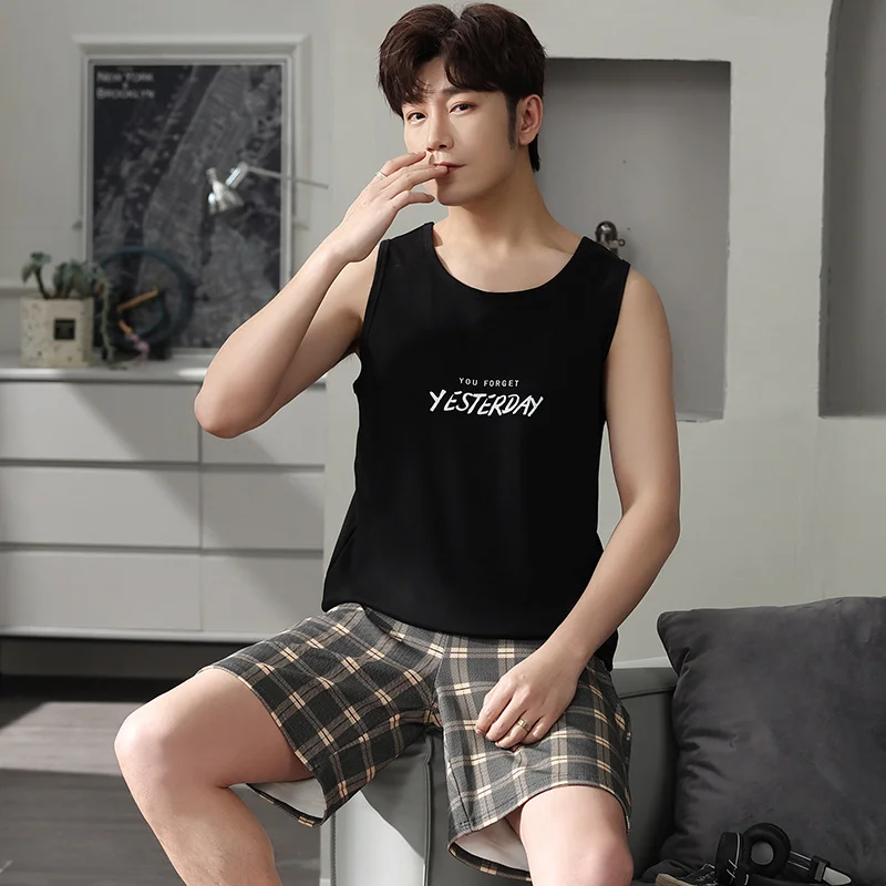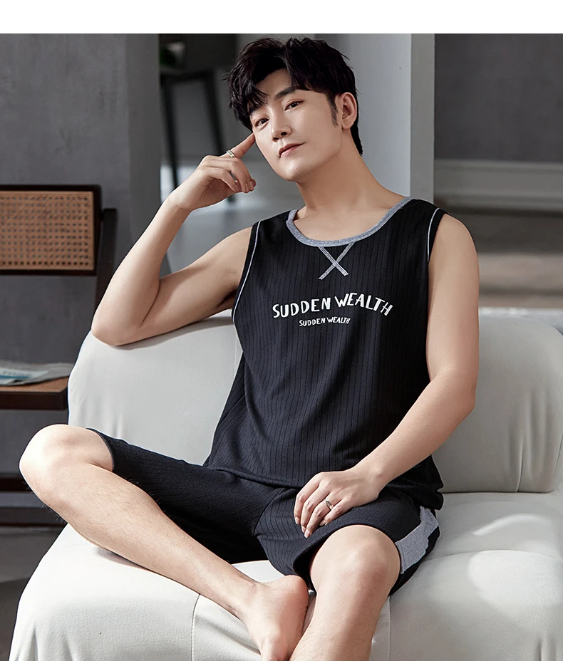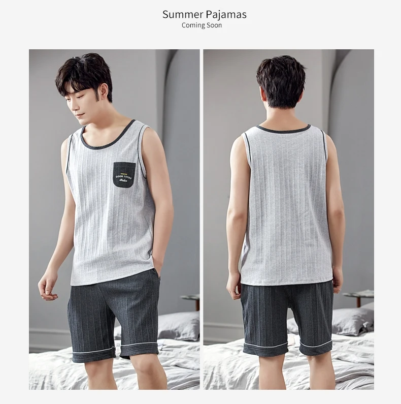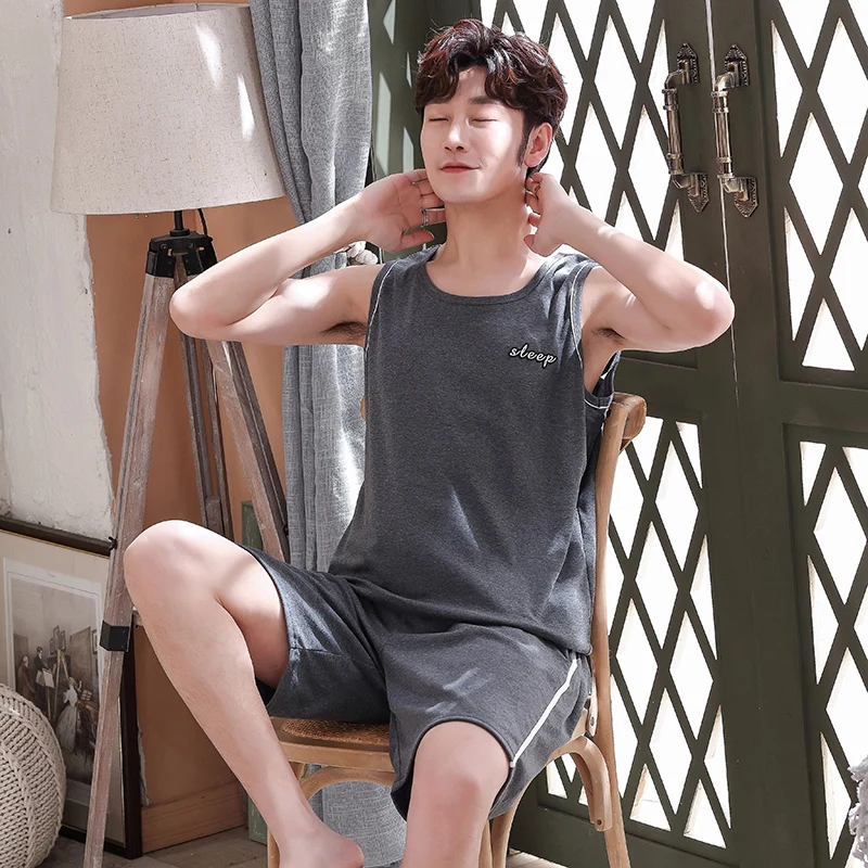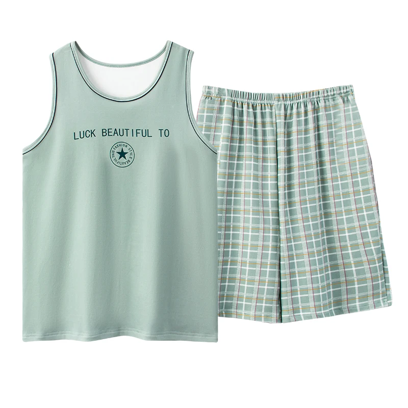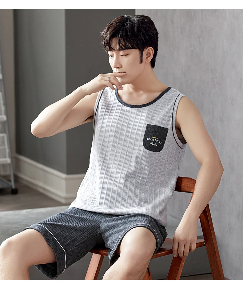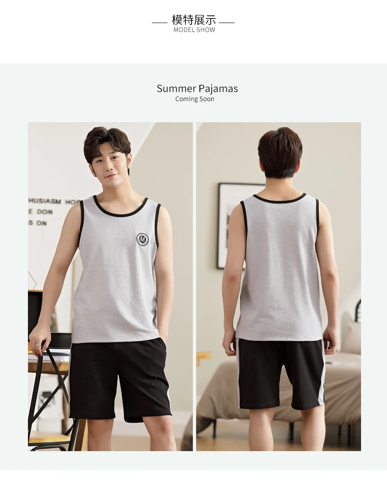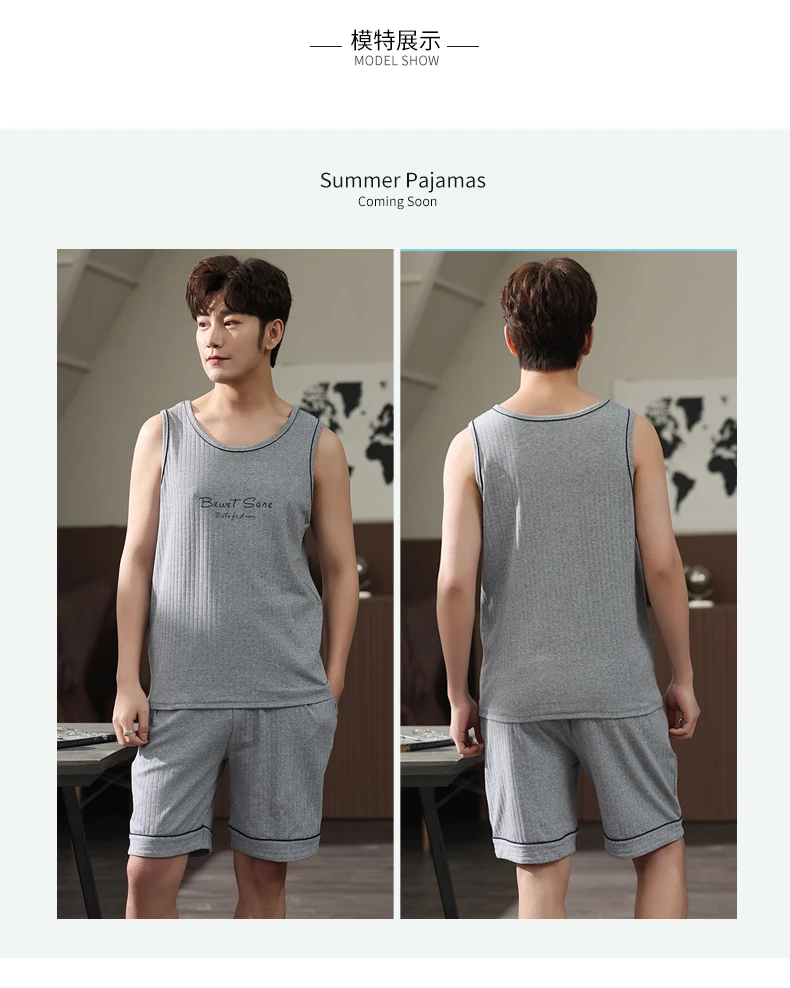 Boy Male Vest Pants Pajamas Sleeveless Vest Pant Pyjamas Undershirt Sleepwear Nightwear Elastic Waist Man's Jams 6535 Cotton HDE