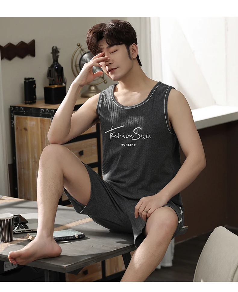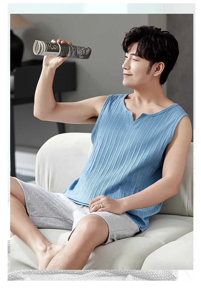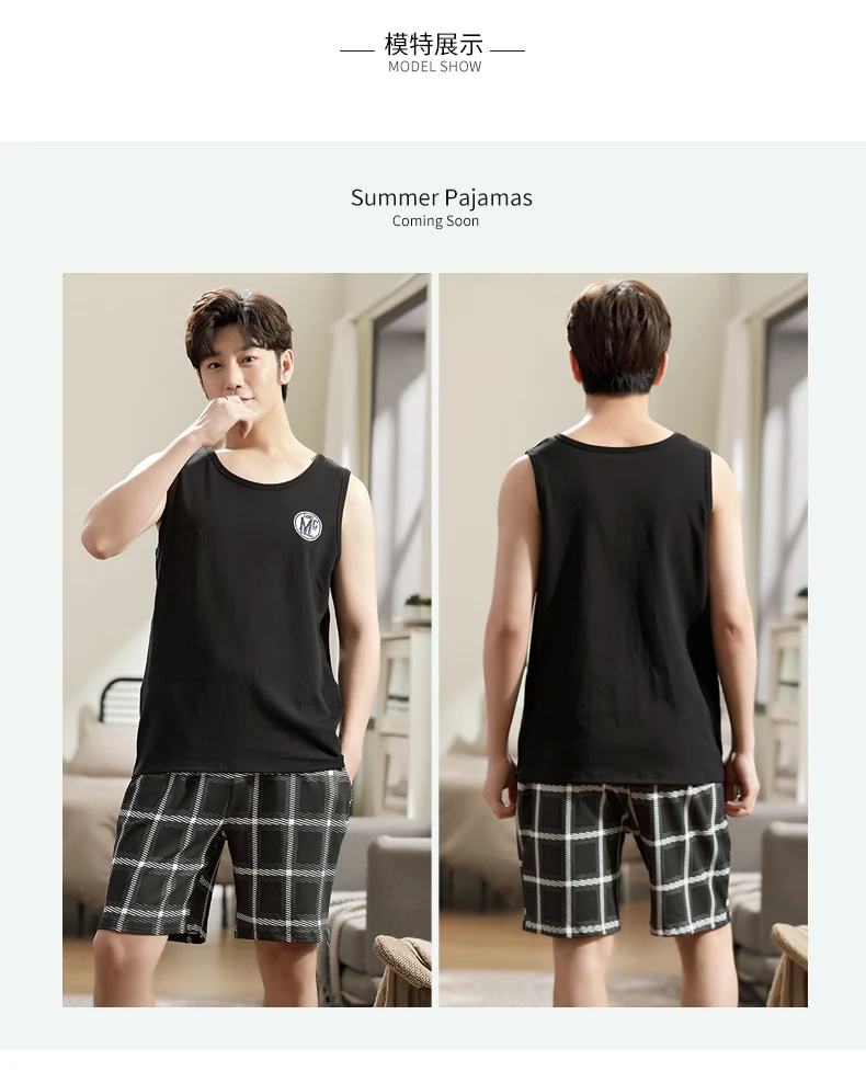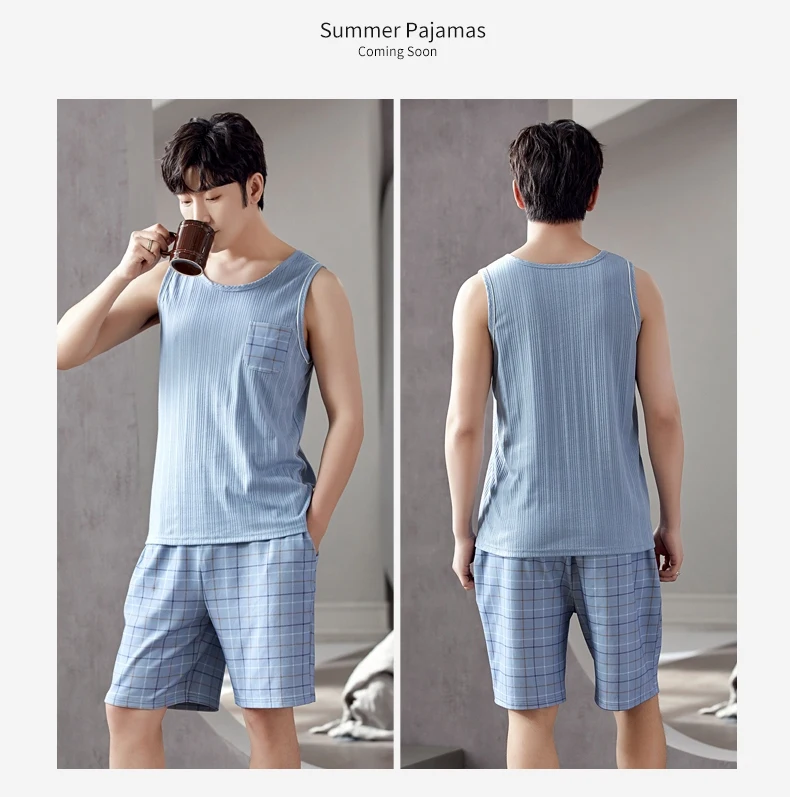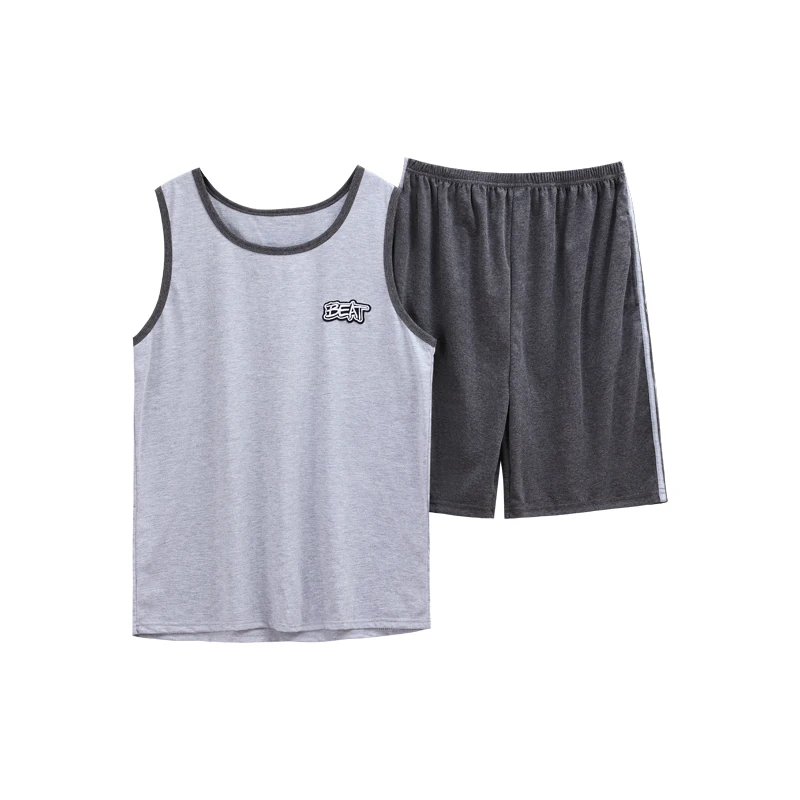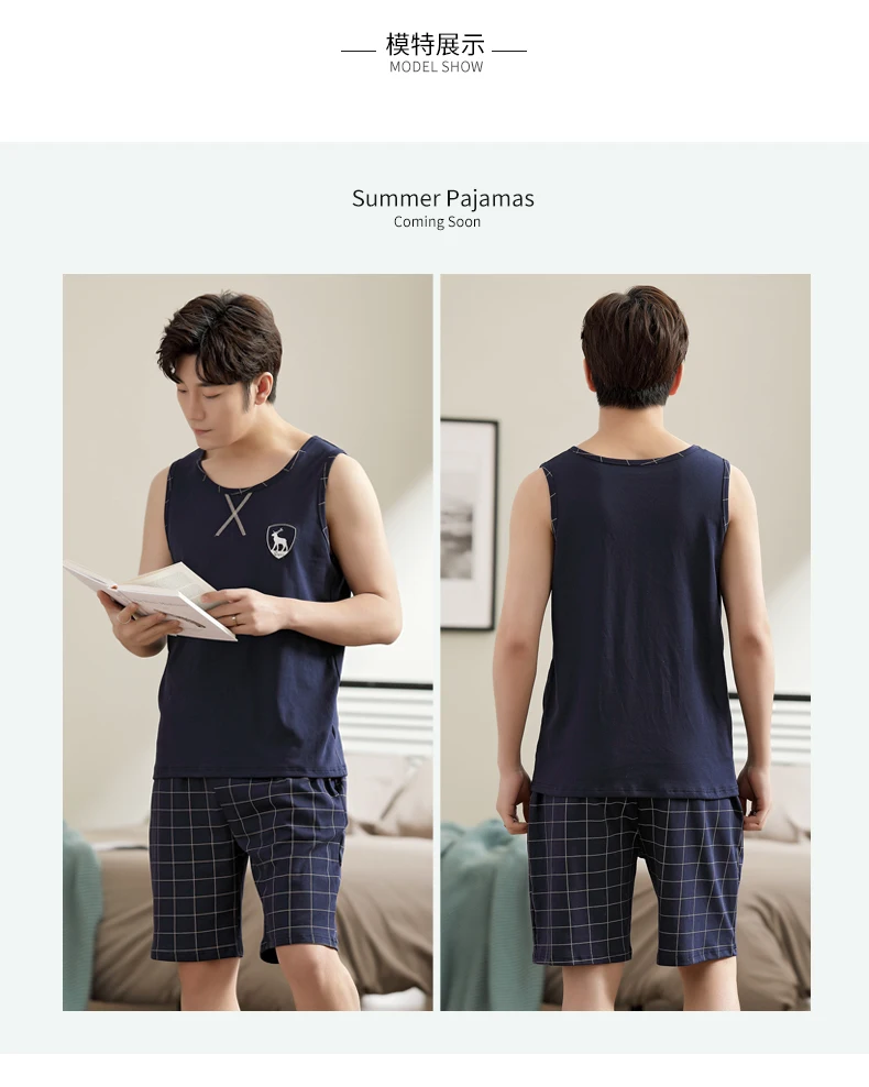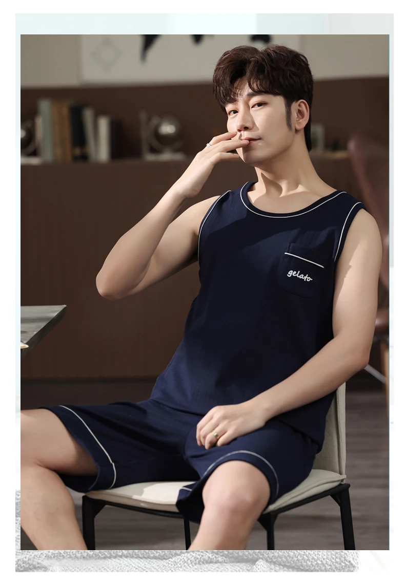 Boy Male Vest Pants Pajamas Sleeveless Vest Pant Pyjamas Undershirt Sleepwear Nightwear Elastic Waist Man's Jams 6535 Cotton HDE