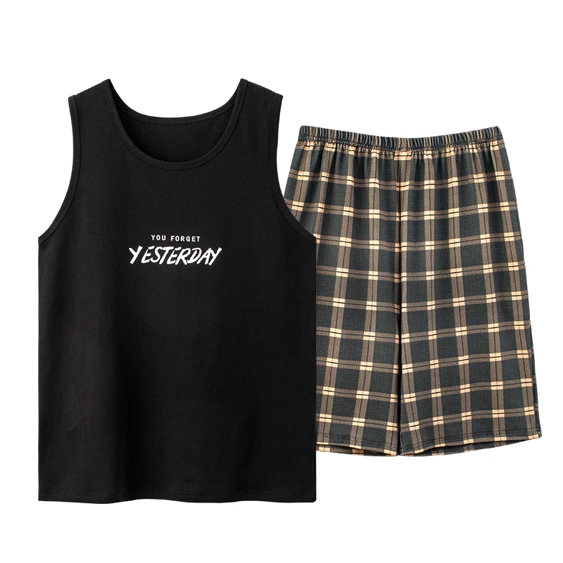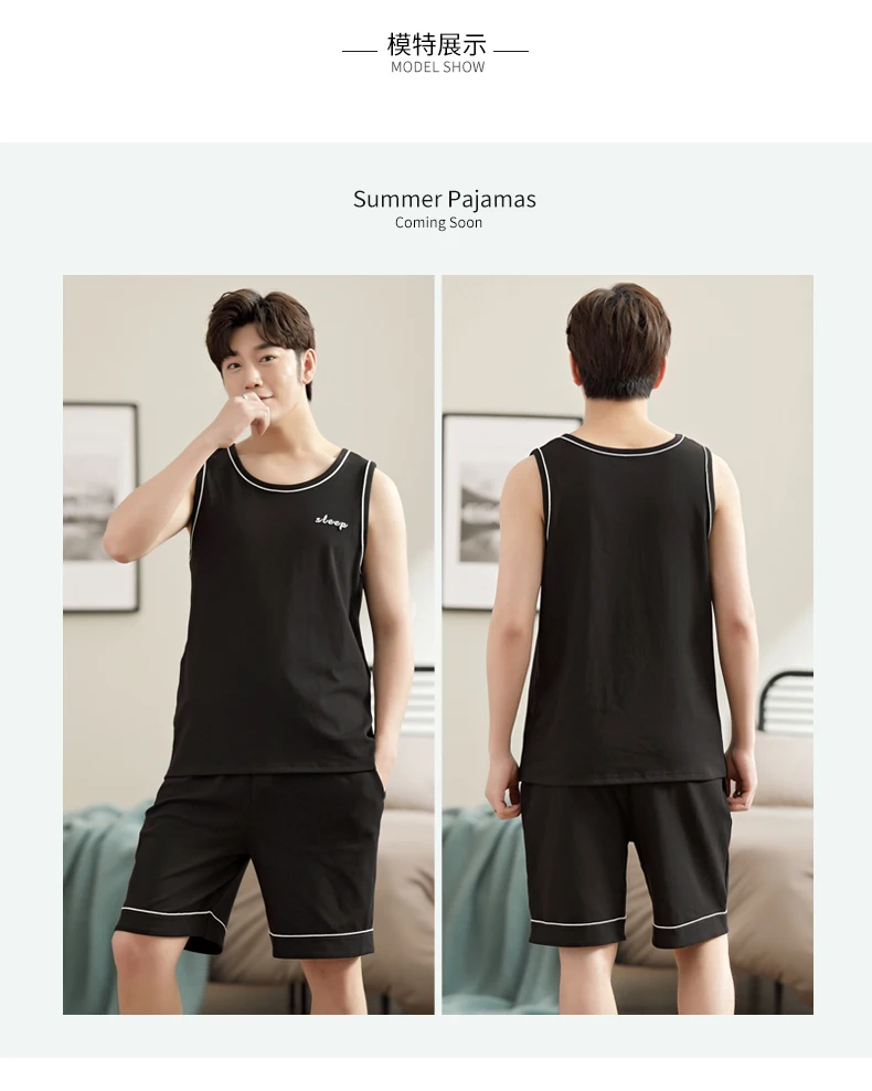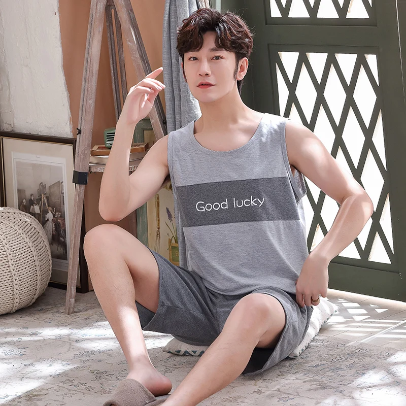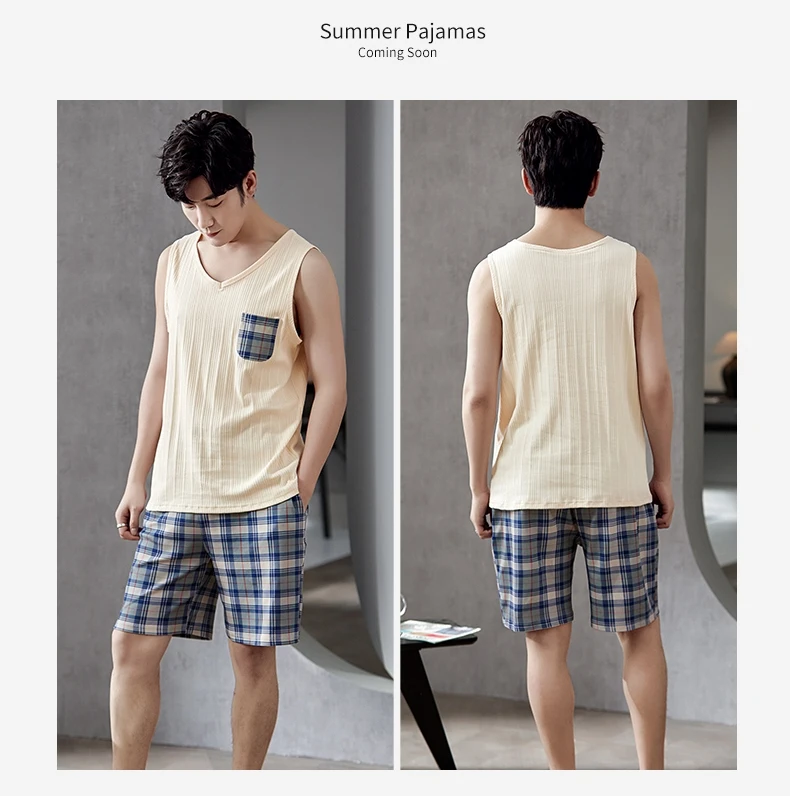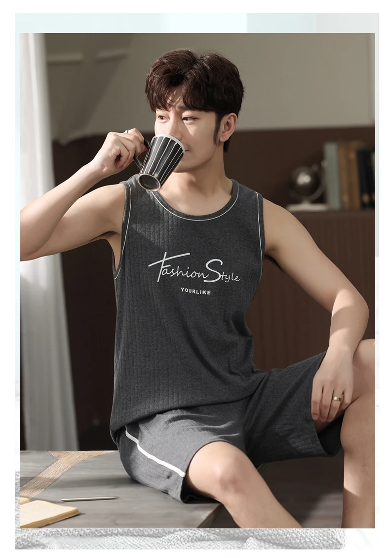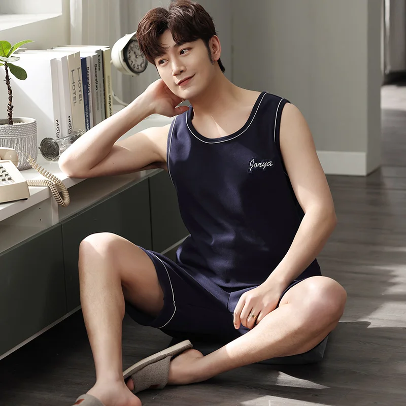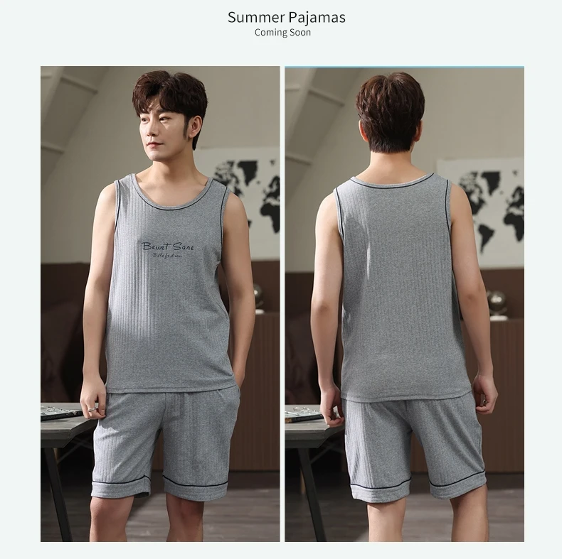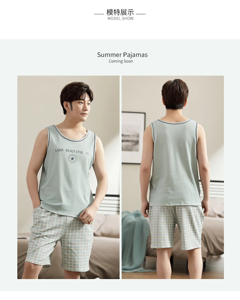 Boy Male Vest Pants Pajamas Sleeveless Vest Pant Pyjamas Undershirt Sleepwear Nightwear Elastic Waist Man's Jams 6535 Cotton HDE