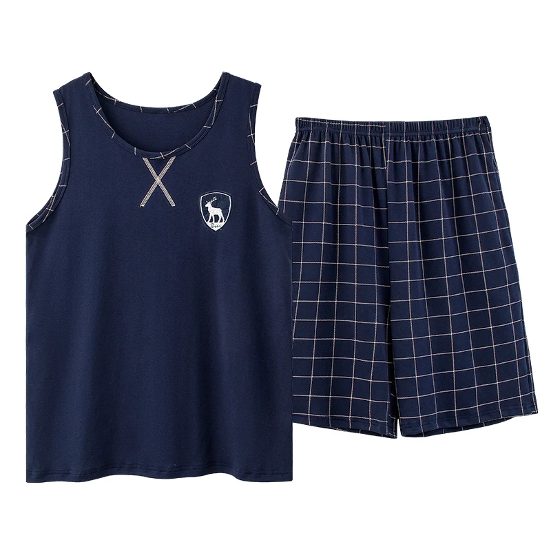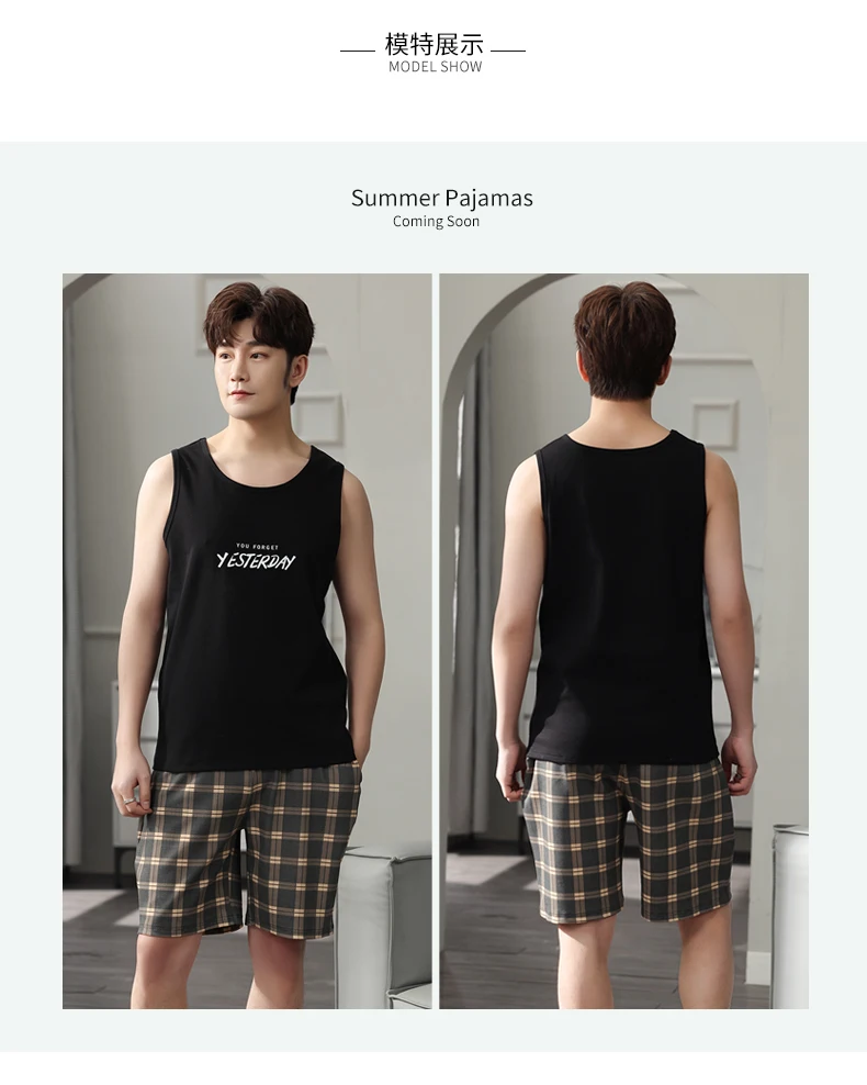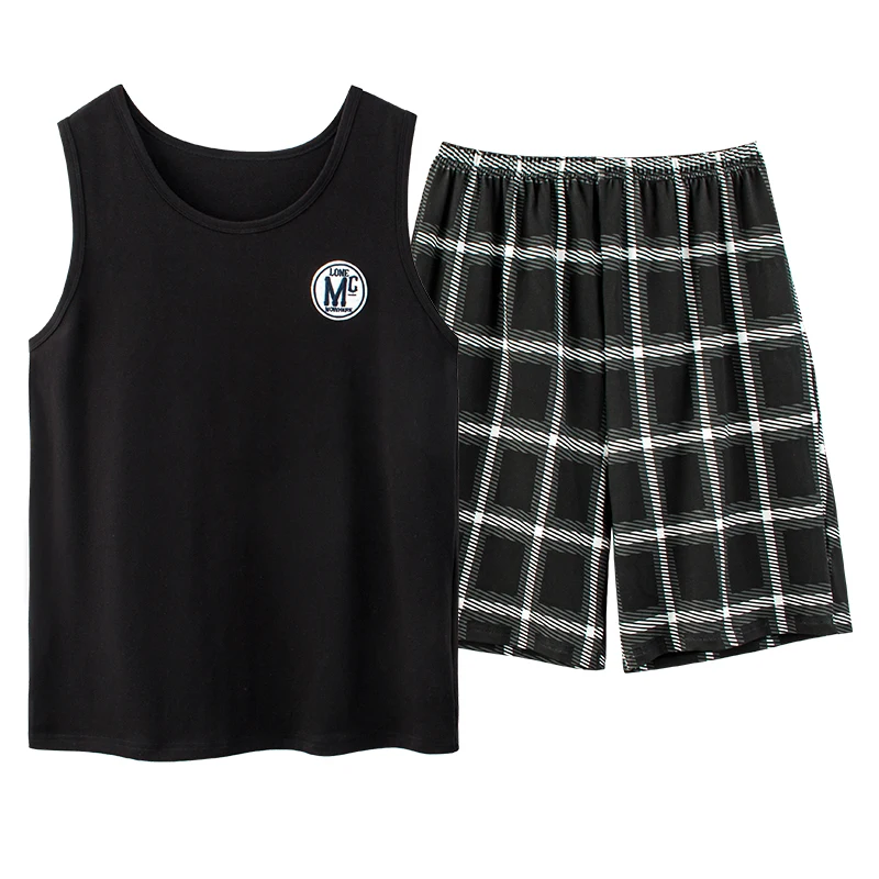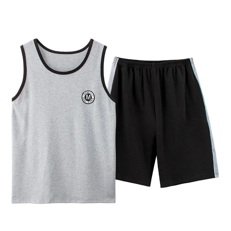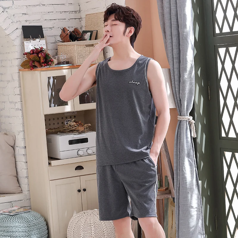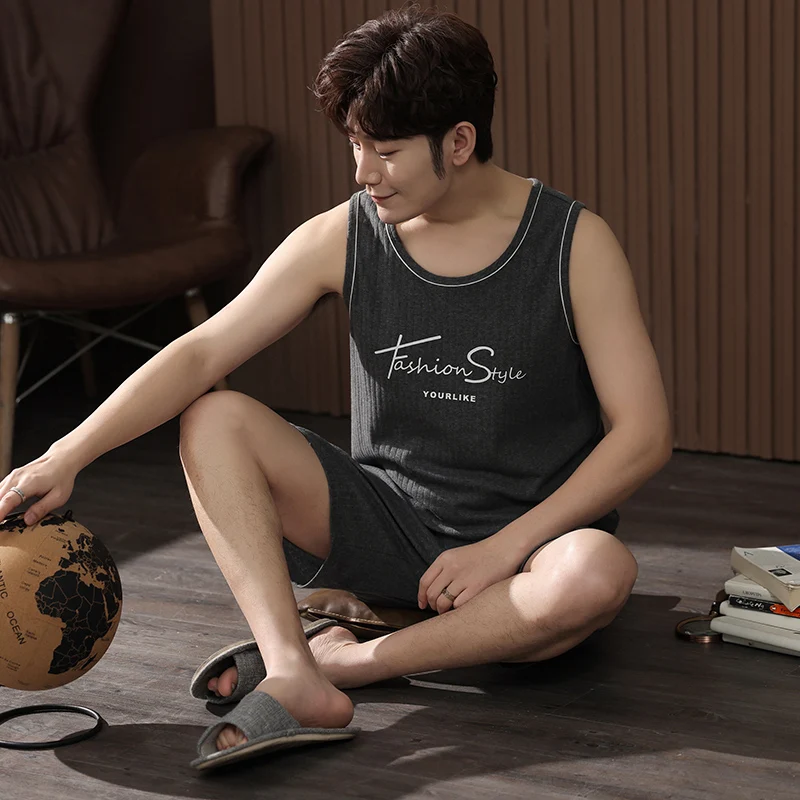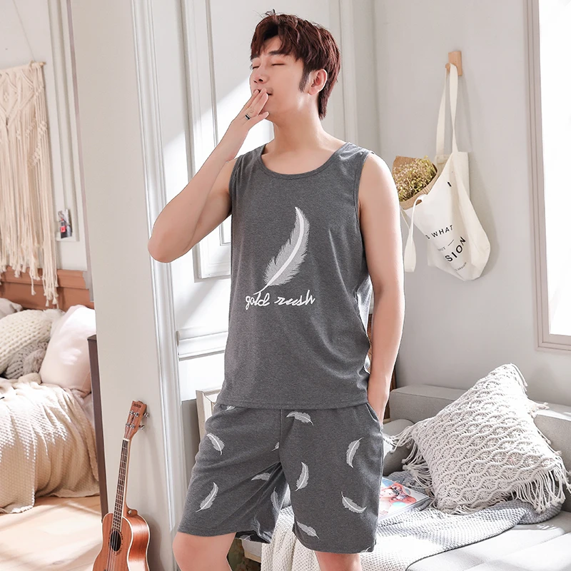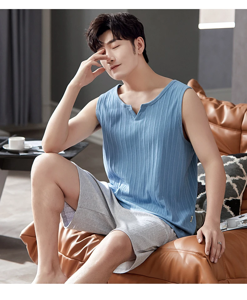 Boy Male Vest Pants Pajamas Sleeveless Vest Pant Pyjamas Undershirt Sleepwear Nightwear Elastic Waist Man's Jams 6535 Cotton HDE
