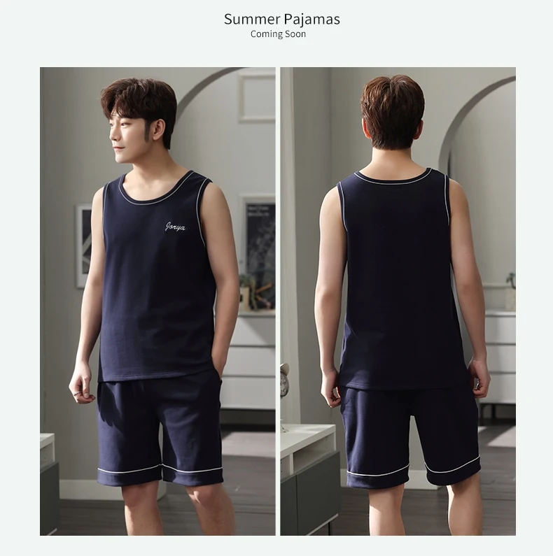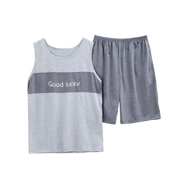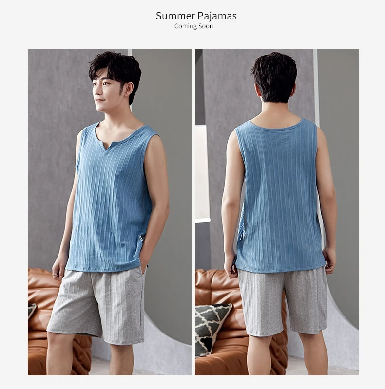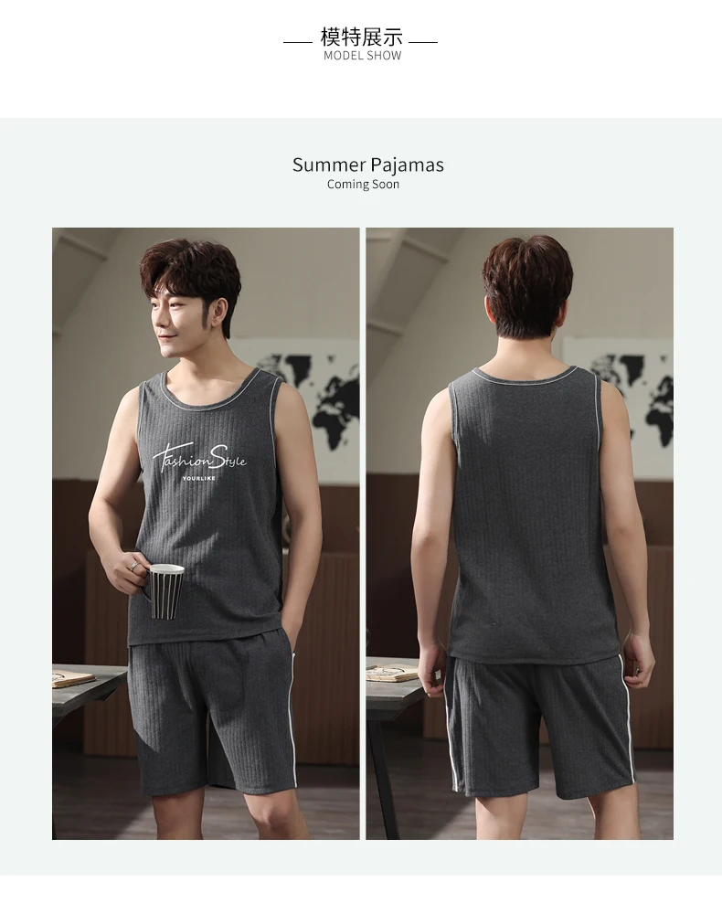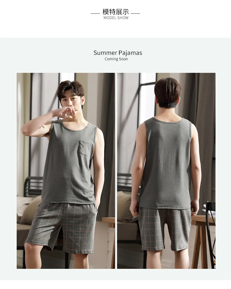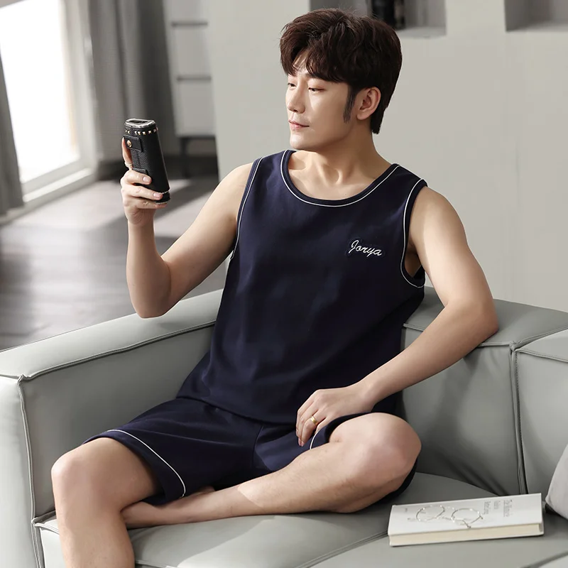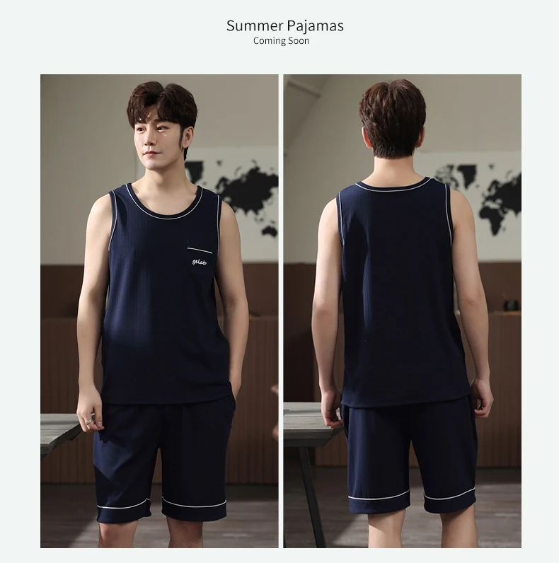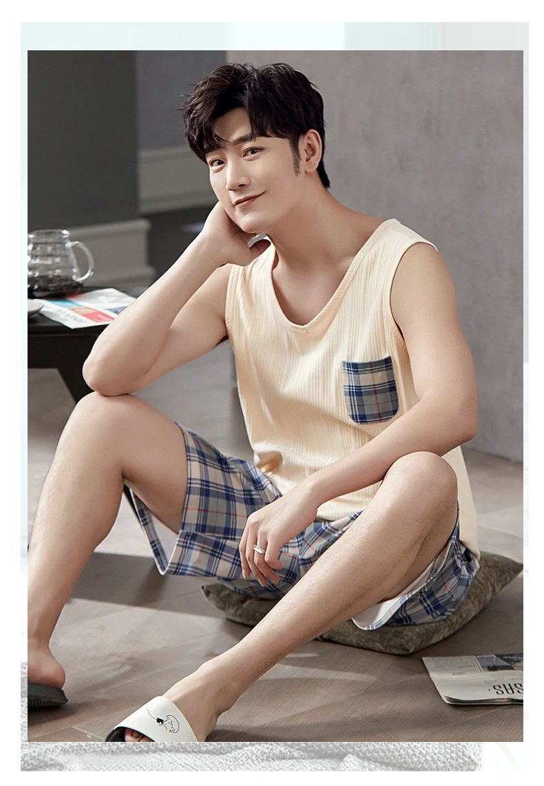 Boy Male Vest Pants Pajamas Sleeveless Vest Pant Pyjamas Undershirt Sleepwear Nightwear Elastic Waist Man's Jams 6535 Cotton HDE