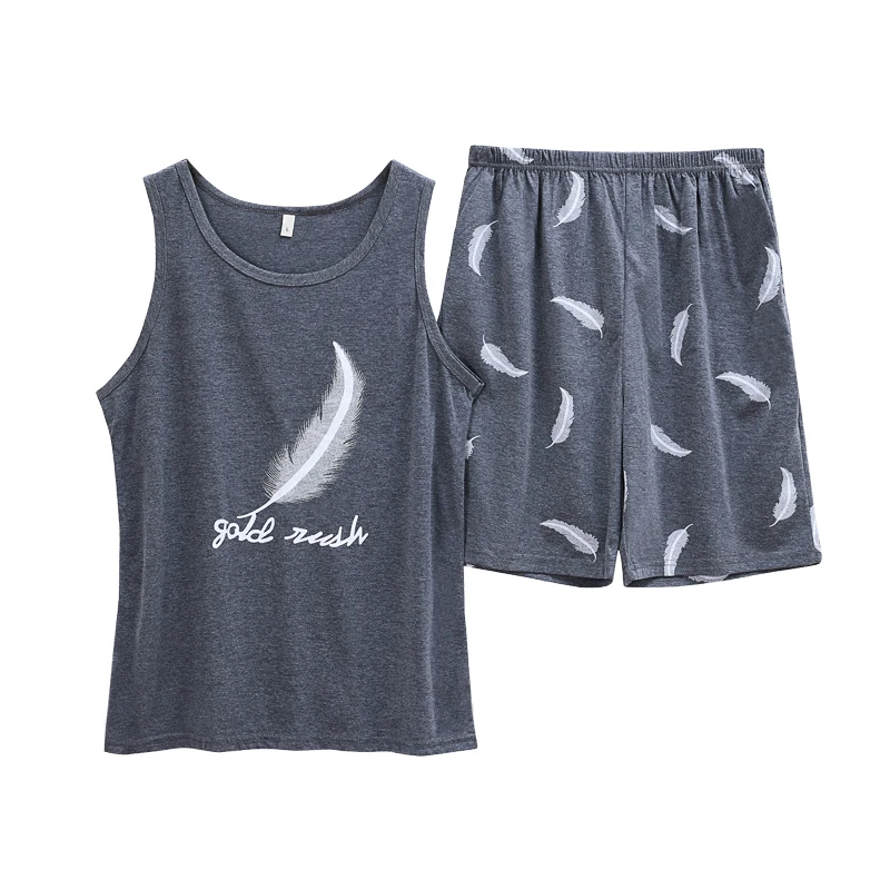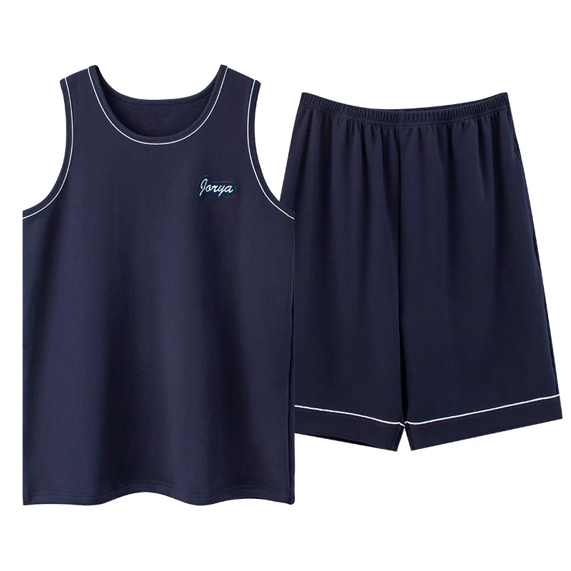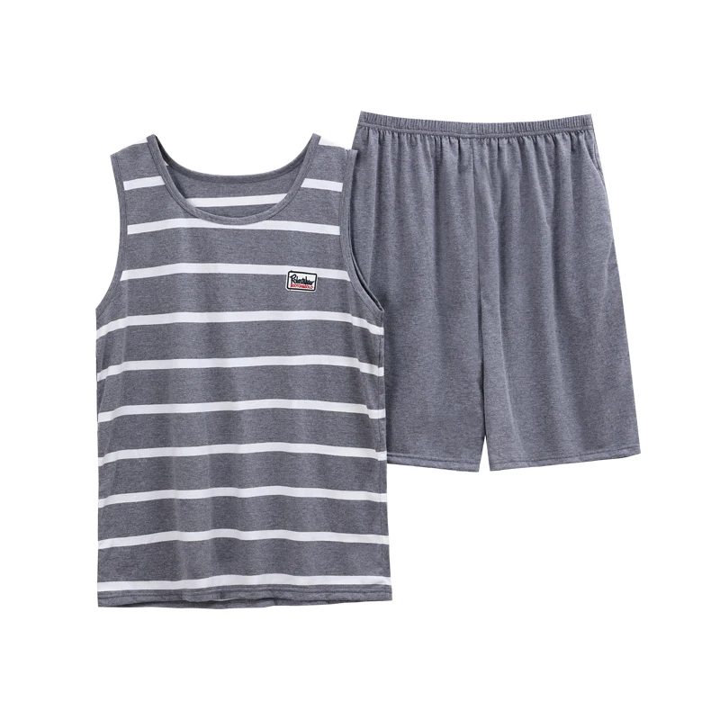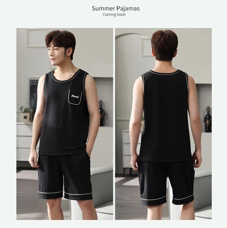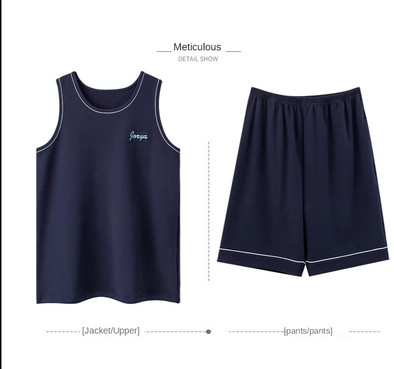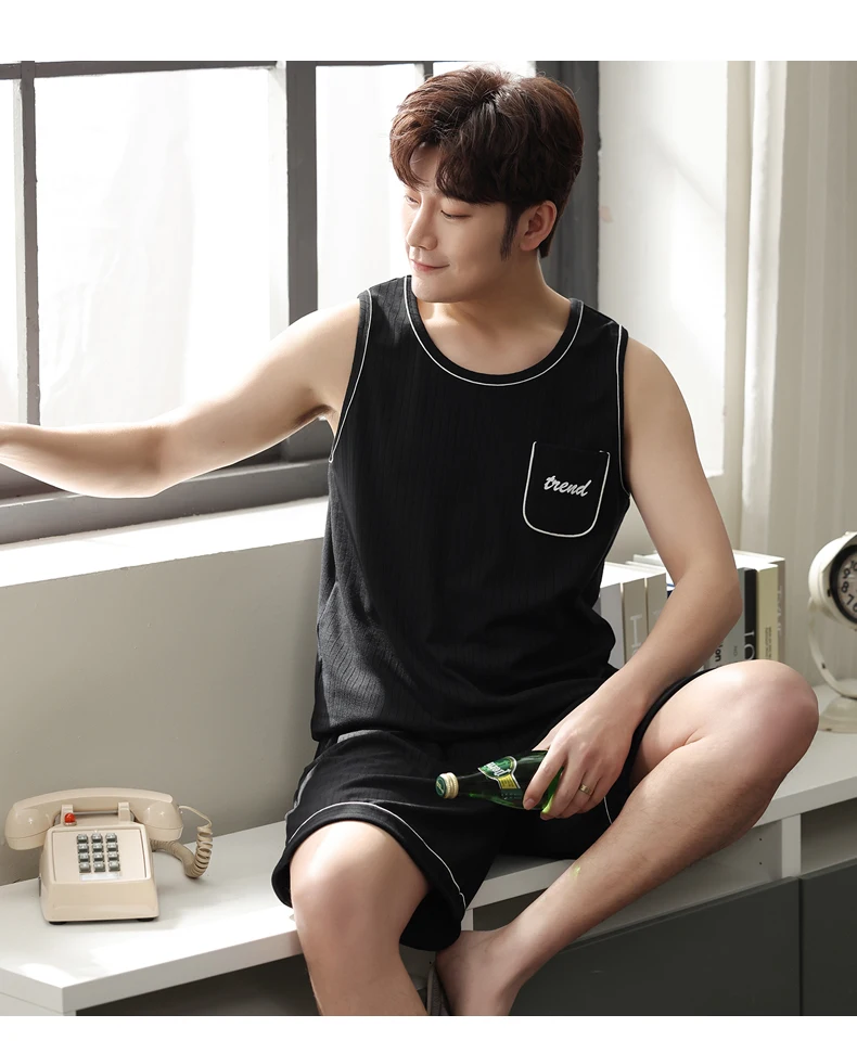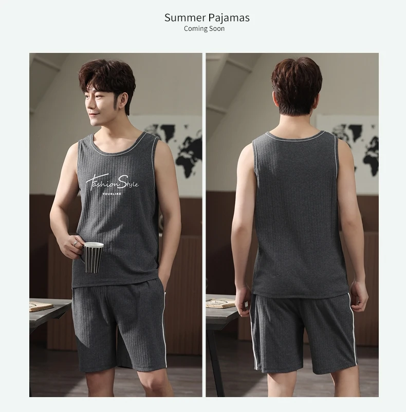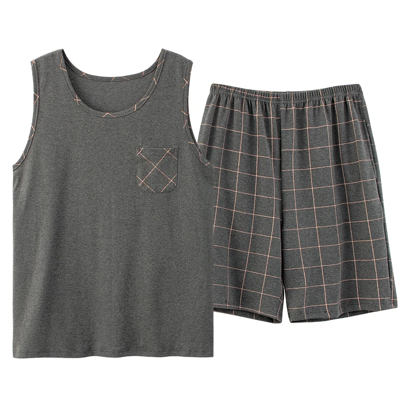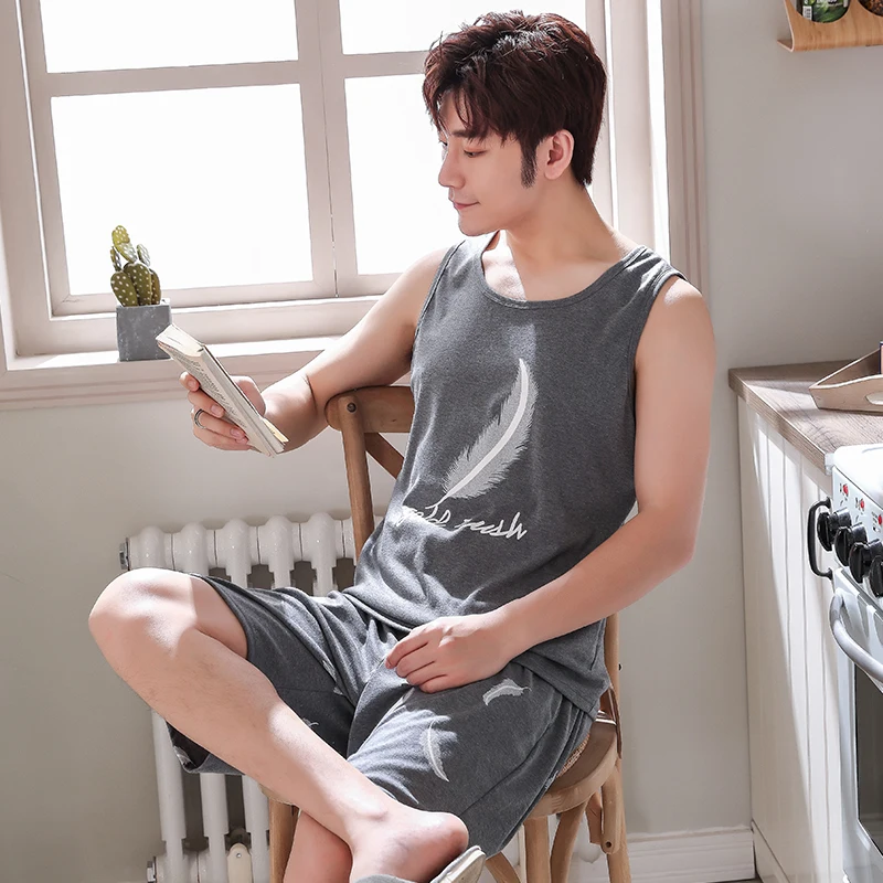Boy Male Vest Pants Pajamas Sleeveless Vest Pant Pyjamas Undershirt Sleepwear Nightwear Elastic Waist Man's Jams 6535 Cotton HDE