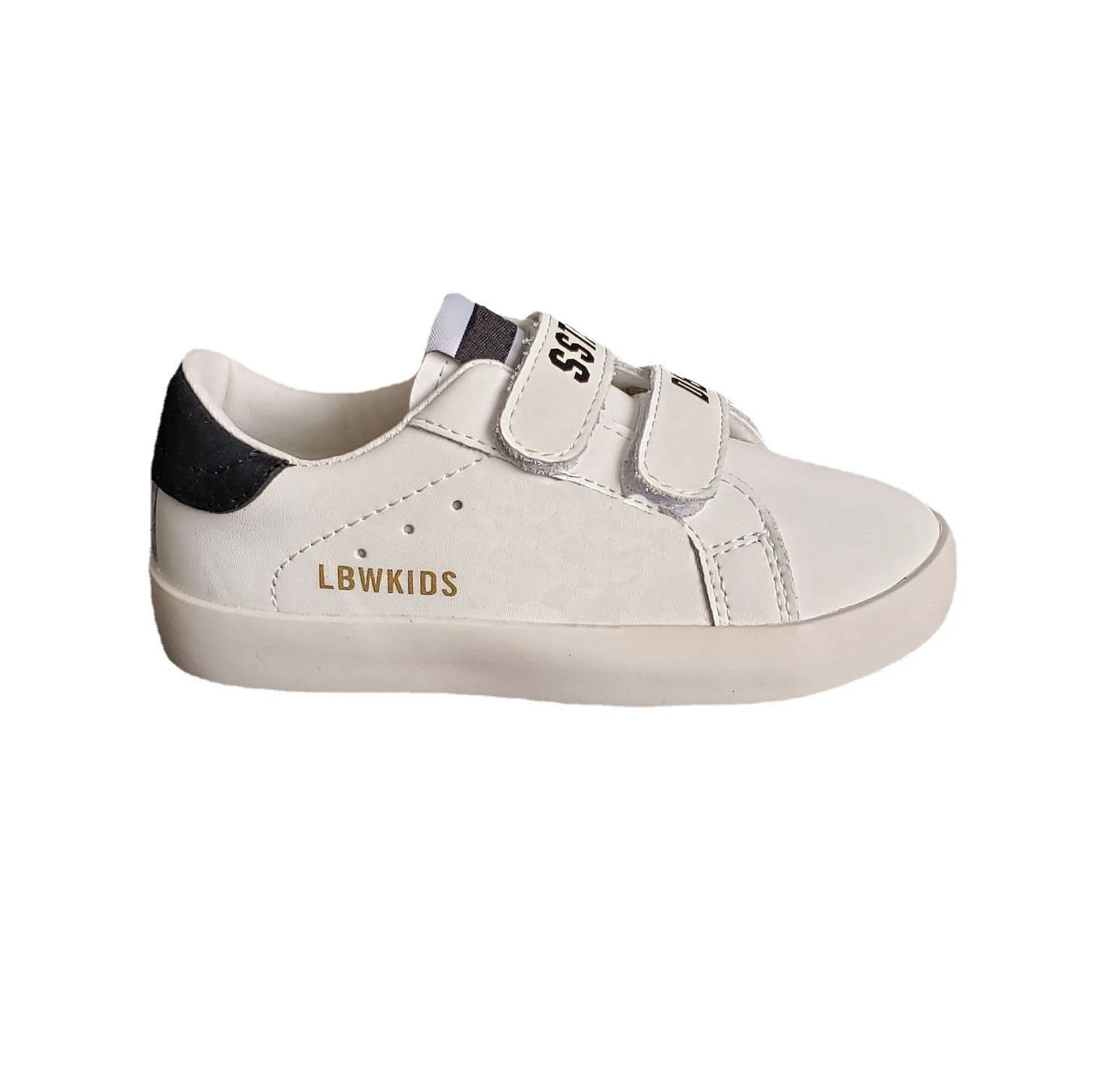 Boy's Old School White Kids Sneakers Low-top Leather Suede Rubber Vintage Laminated hook and loop Tenis Star Leather Trainers