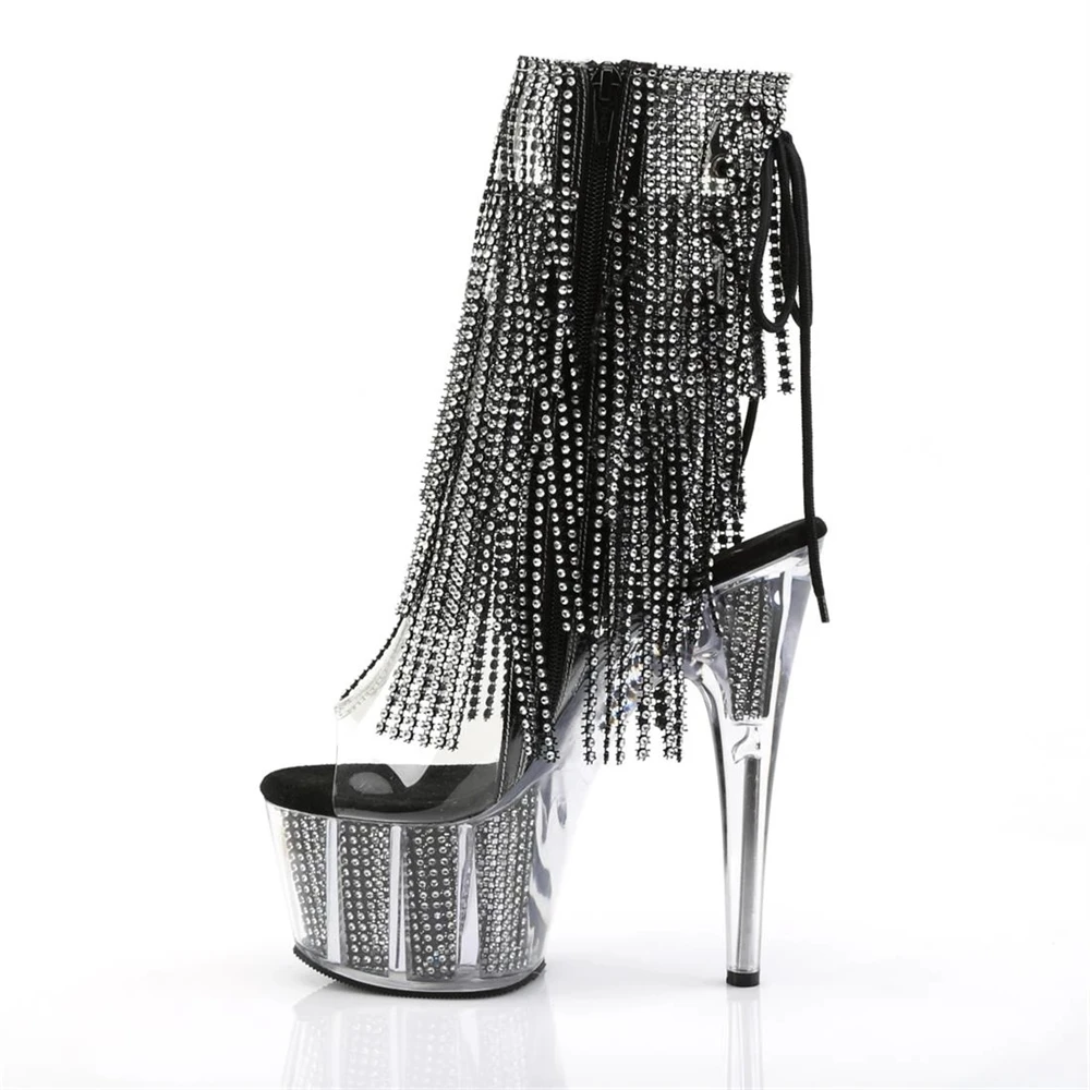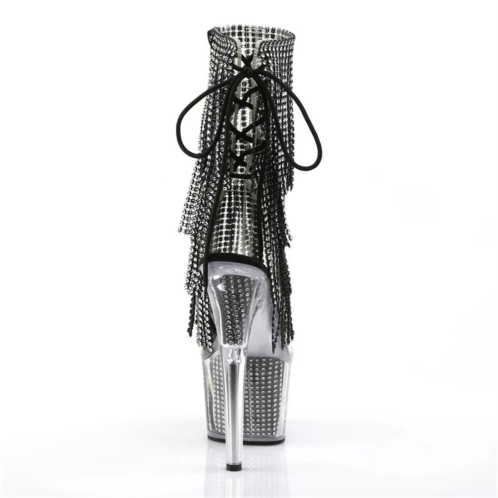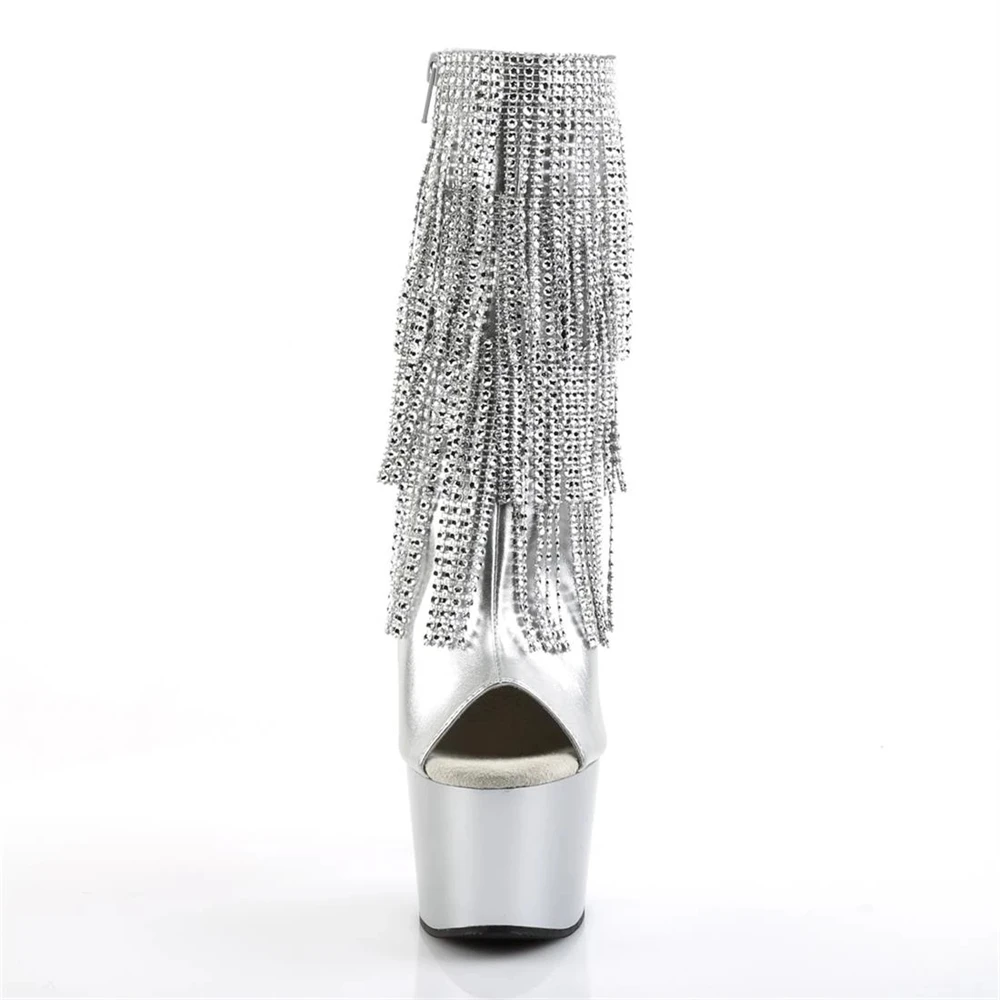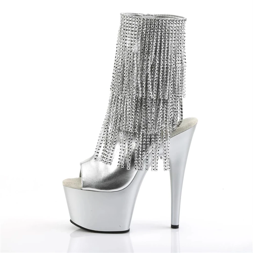 Brand Electroplated Tassels Pumps 17CM Thin High Heels Ankle Boots Pole Dance Nightclub Model Catwalk Platform Women's Shoes