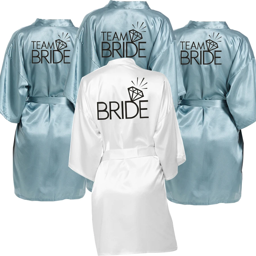 Bride&Team Bride New Silk Kimono Robe Bathrobe Women Bridesmaid Robes Sexy 21 Colors Robes Satin Robe Ladies Dressing Gowns