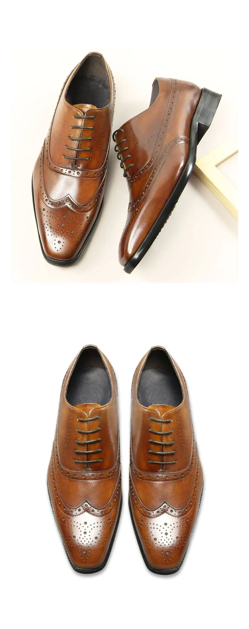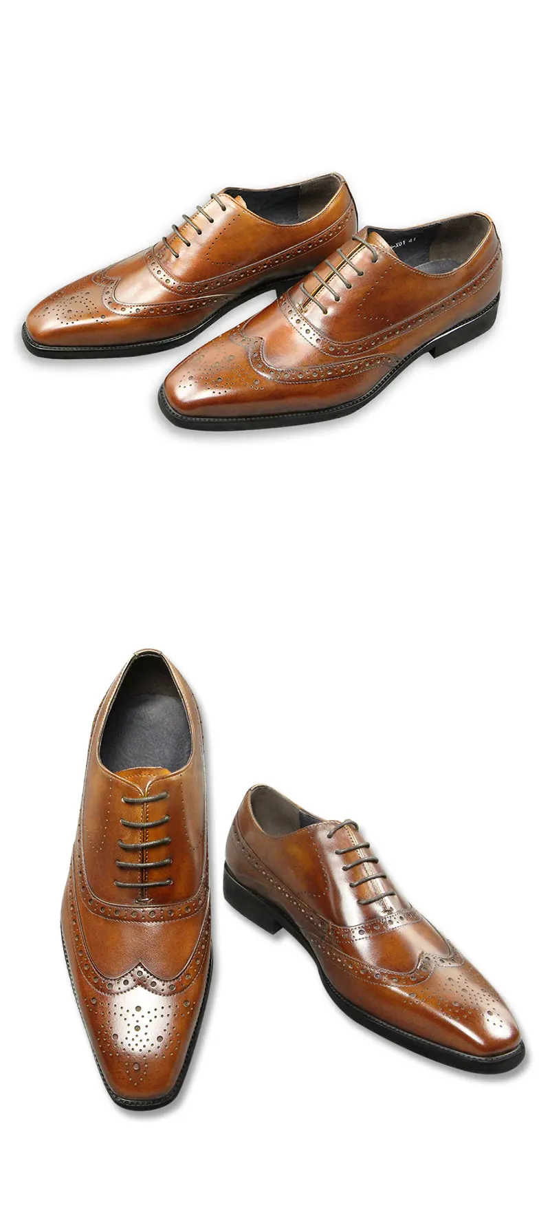 British Style Men’s Summer Brogue Leather Shoes Casual Retro Hand-carved Business Dress Pointed Shoes Genuine Leather Best Gift