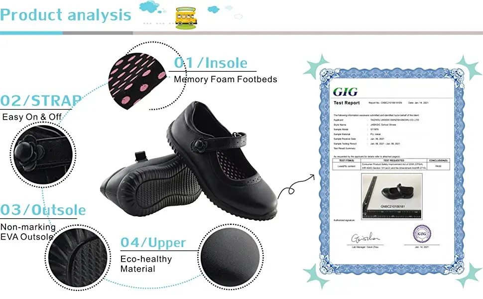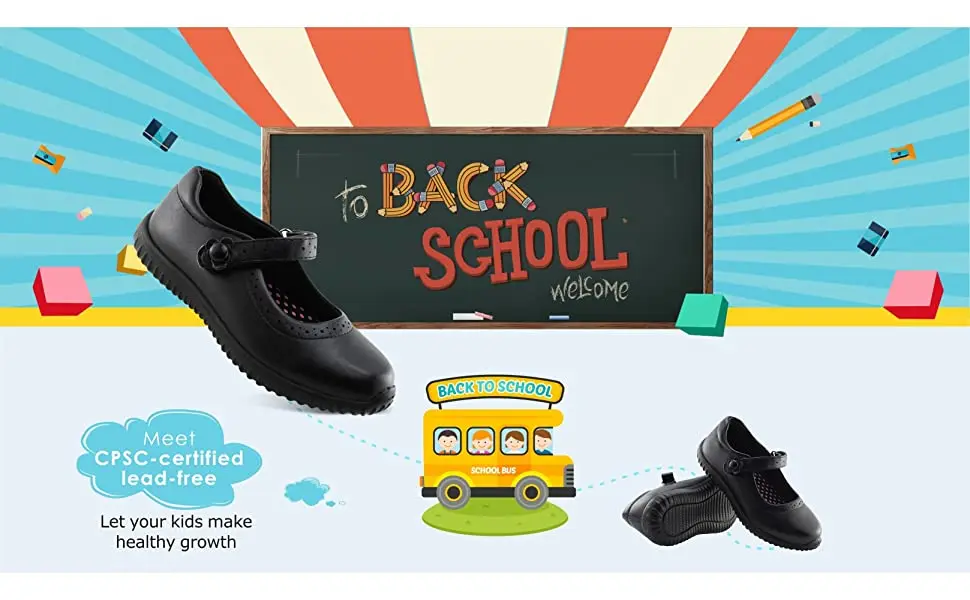 Super lightweight Non-marking EVA outsole, 30% lighter than normal rubber school shoes, adding no extra weight pressure on her feet;Classic Round-toed mary jane design, suitable for occasions like school, wedding, church or play time.