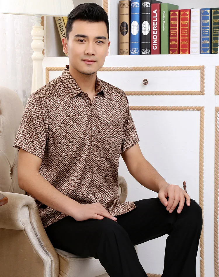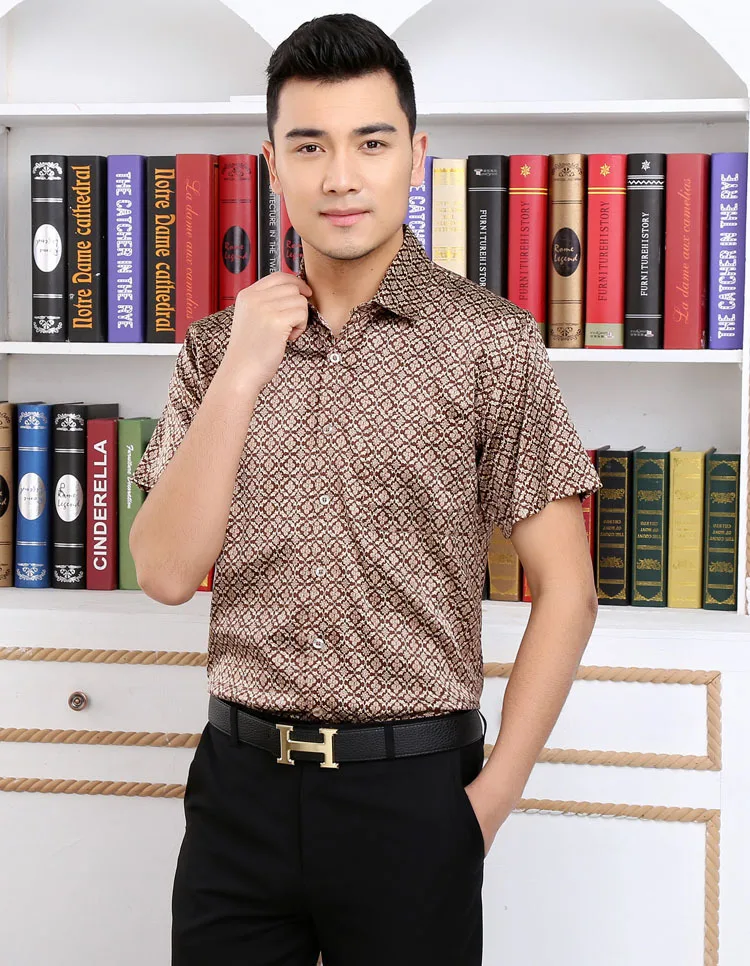 Brown 2022 mulberry silk Plus – size short sleeve shirt men's leisure