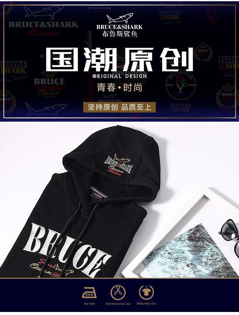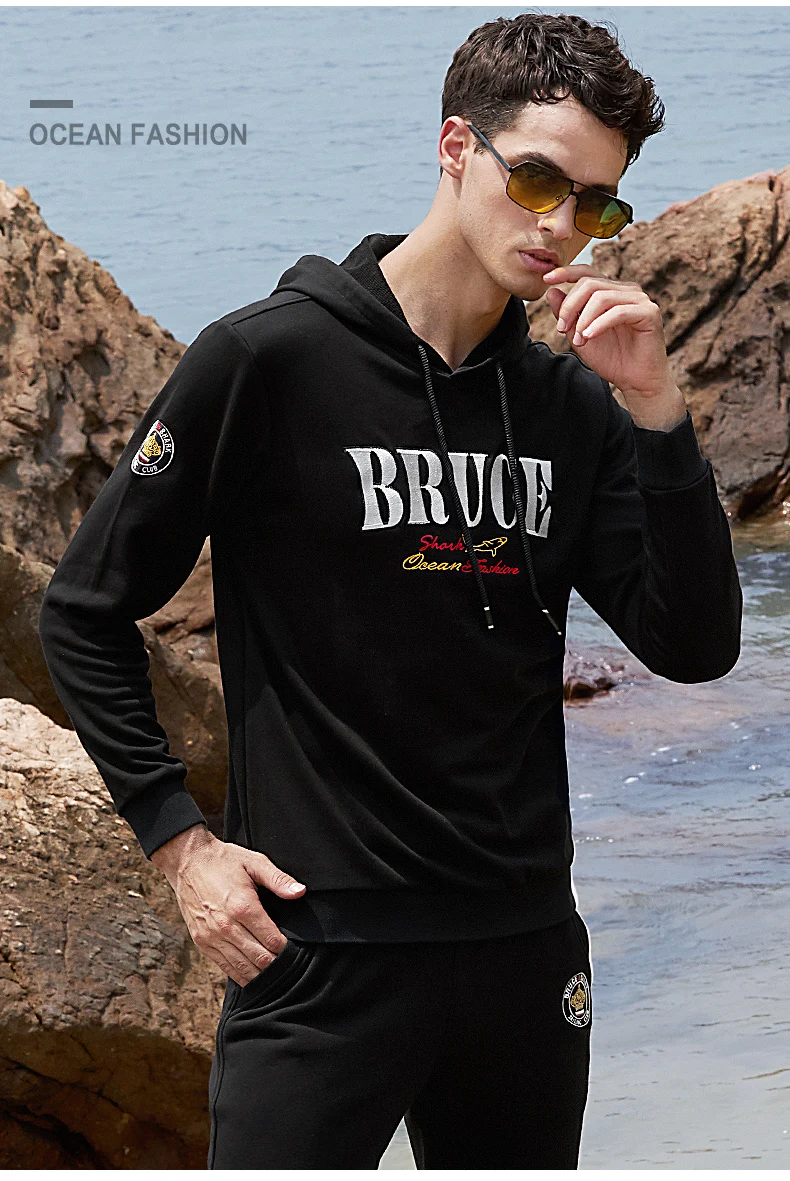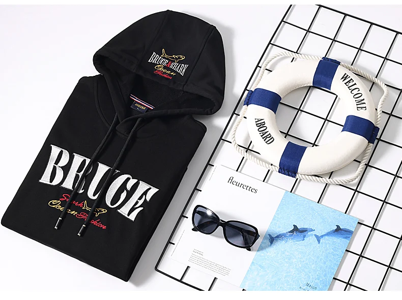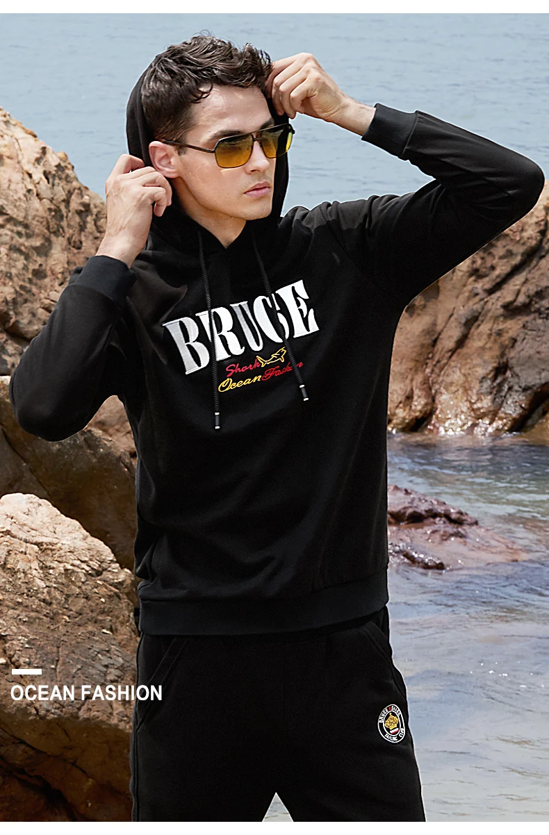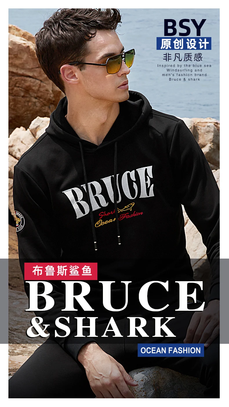 Bruce&Shark Men's Sports coat Men Hoodies Thicken Causal Fashion Style Male Tops Embroidery loose hoodies Top Quality M to 3XL