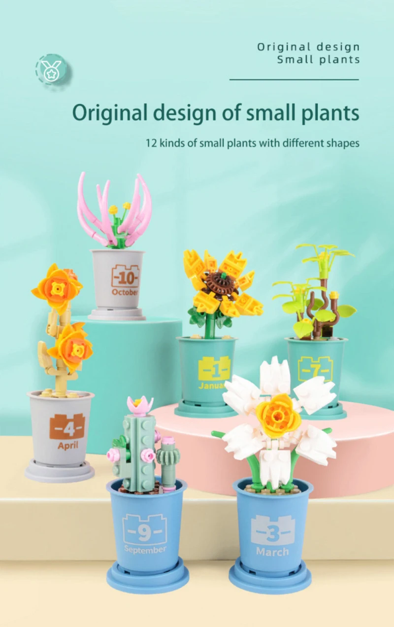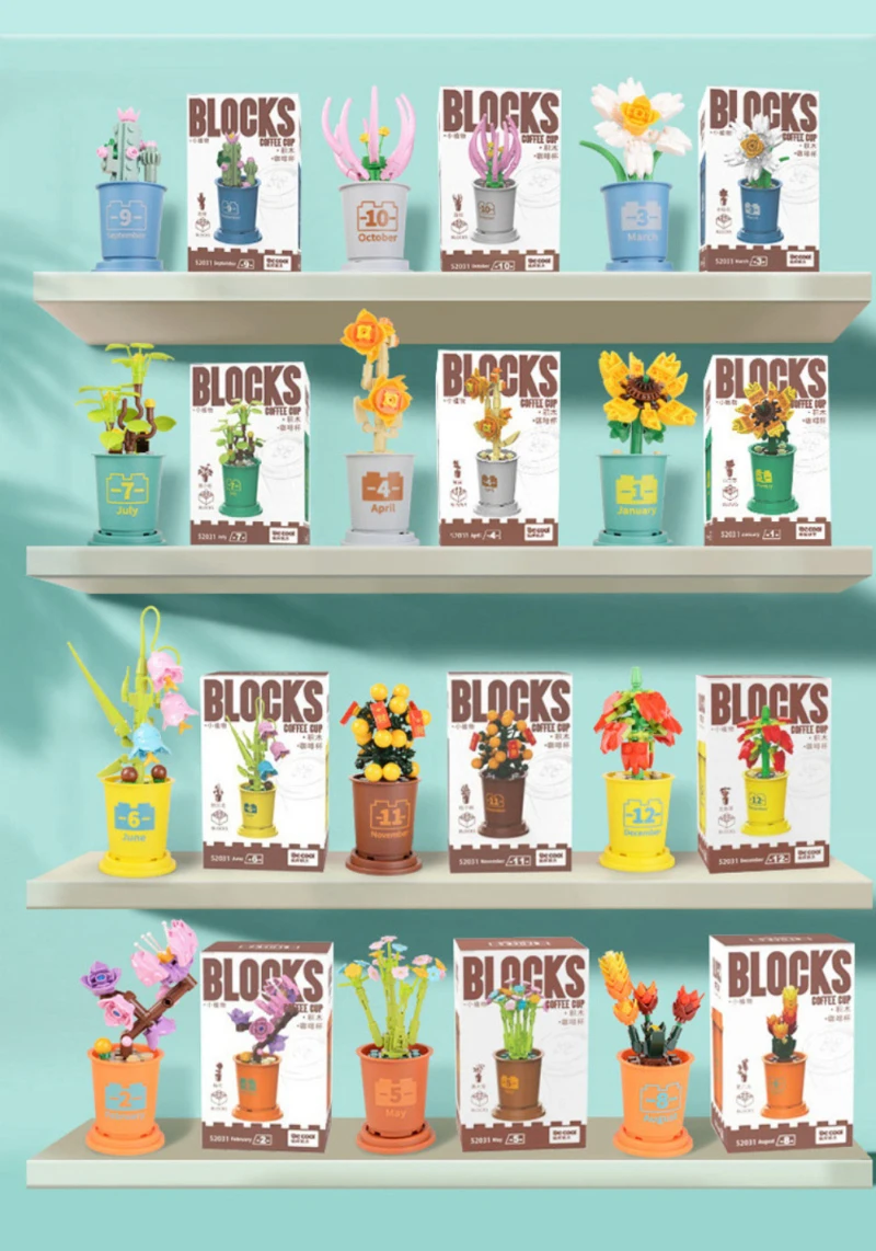 Building Block Bouquet 3D Model Toy Plant Succulents Cactus Sunflower Plum Flower Chrysanthemum Pepper Assembly Brick Toy Gift