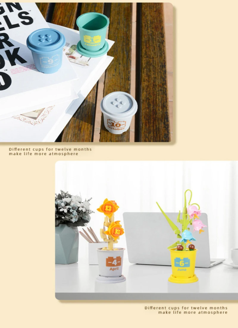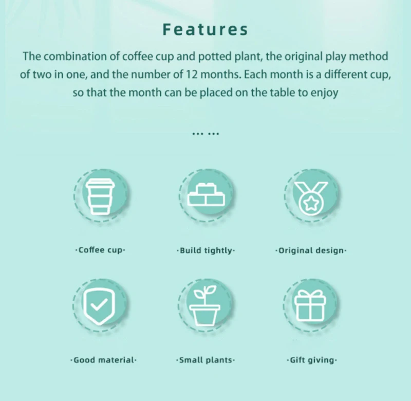 4. The combination of coffee cups and potted plants, with the numbers of 12 months, can have different surprises every month