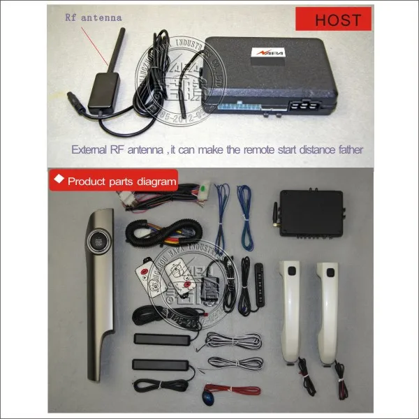 Car auto keyless entry push start with smart handle unlock remote start alarm system  for toyota prado