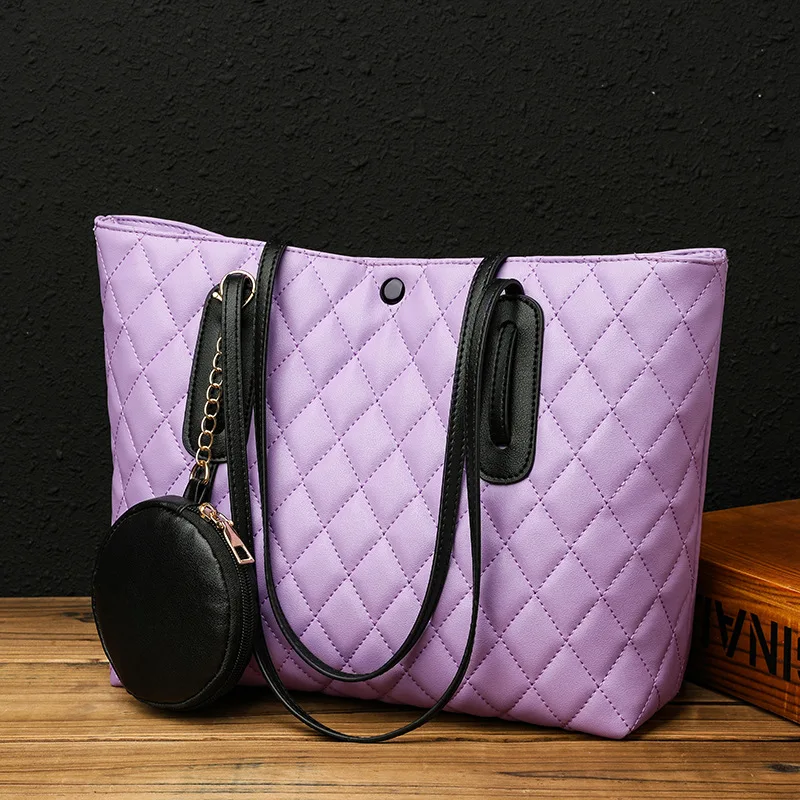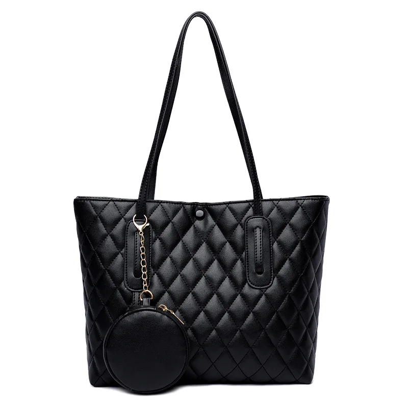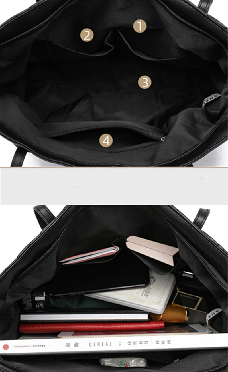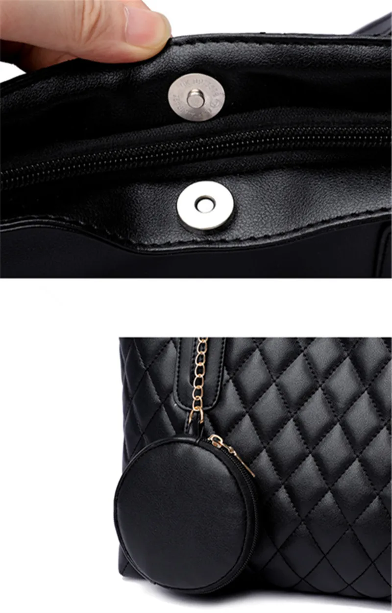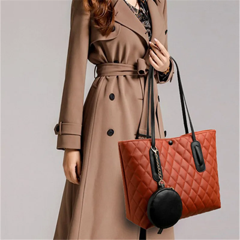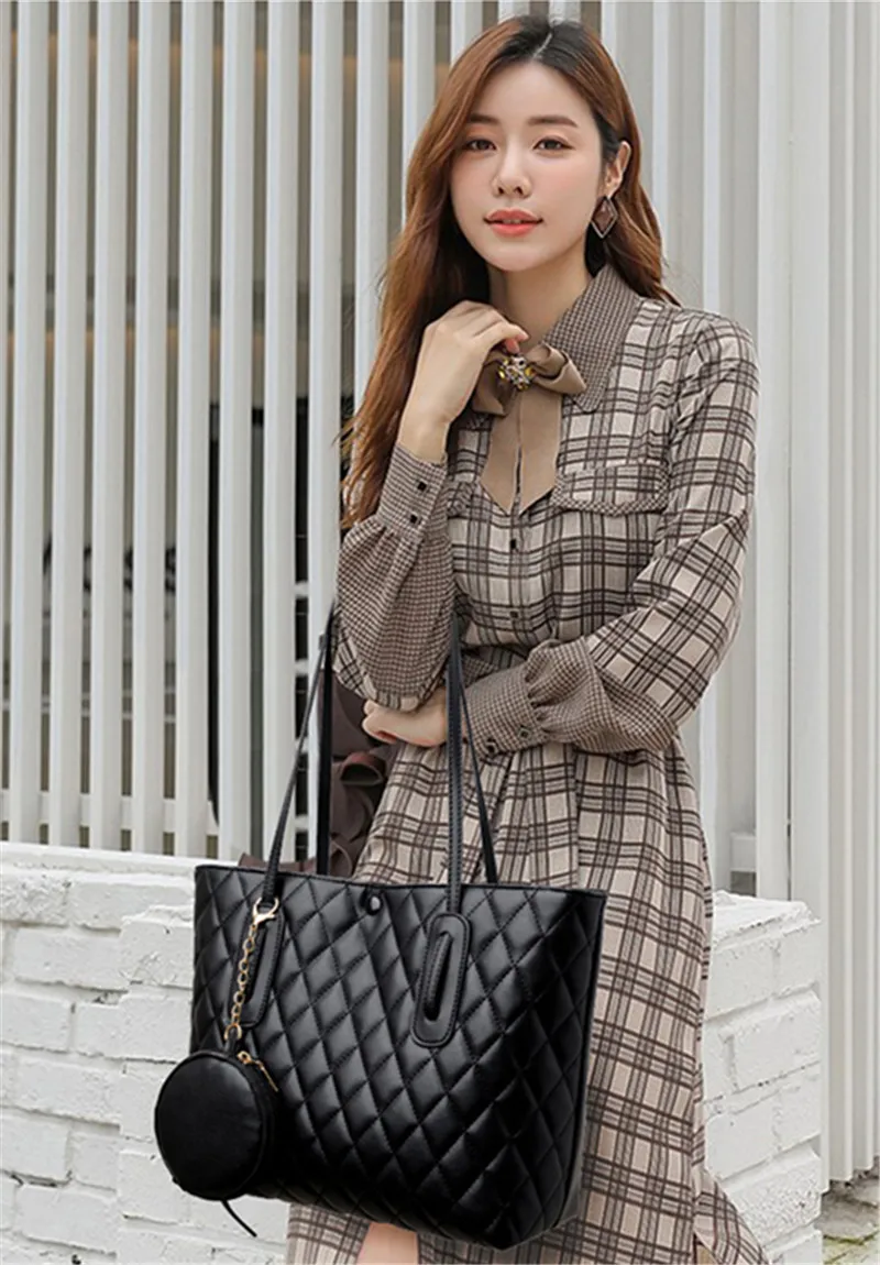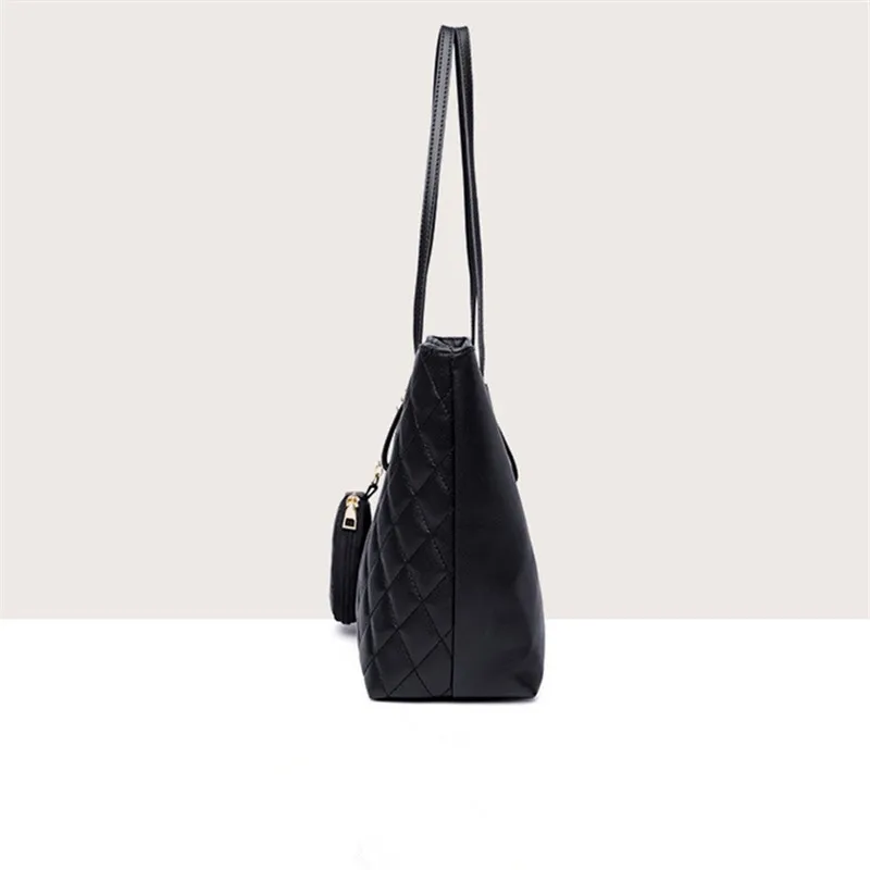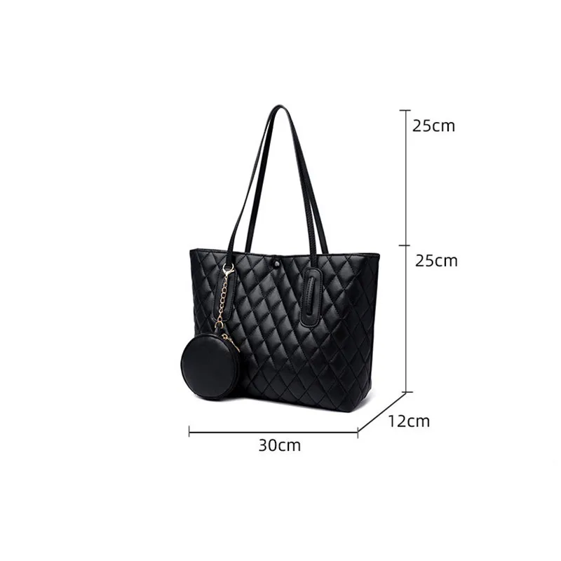 Casual Women PU Leather Tote Shoulder Crossbody Bag For Female Fashion Plaid Large Capacity Handbag Purse 2 Pcs Set Shopping Bag