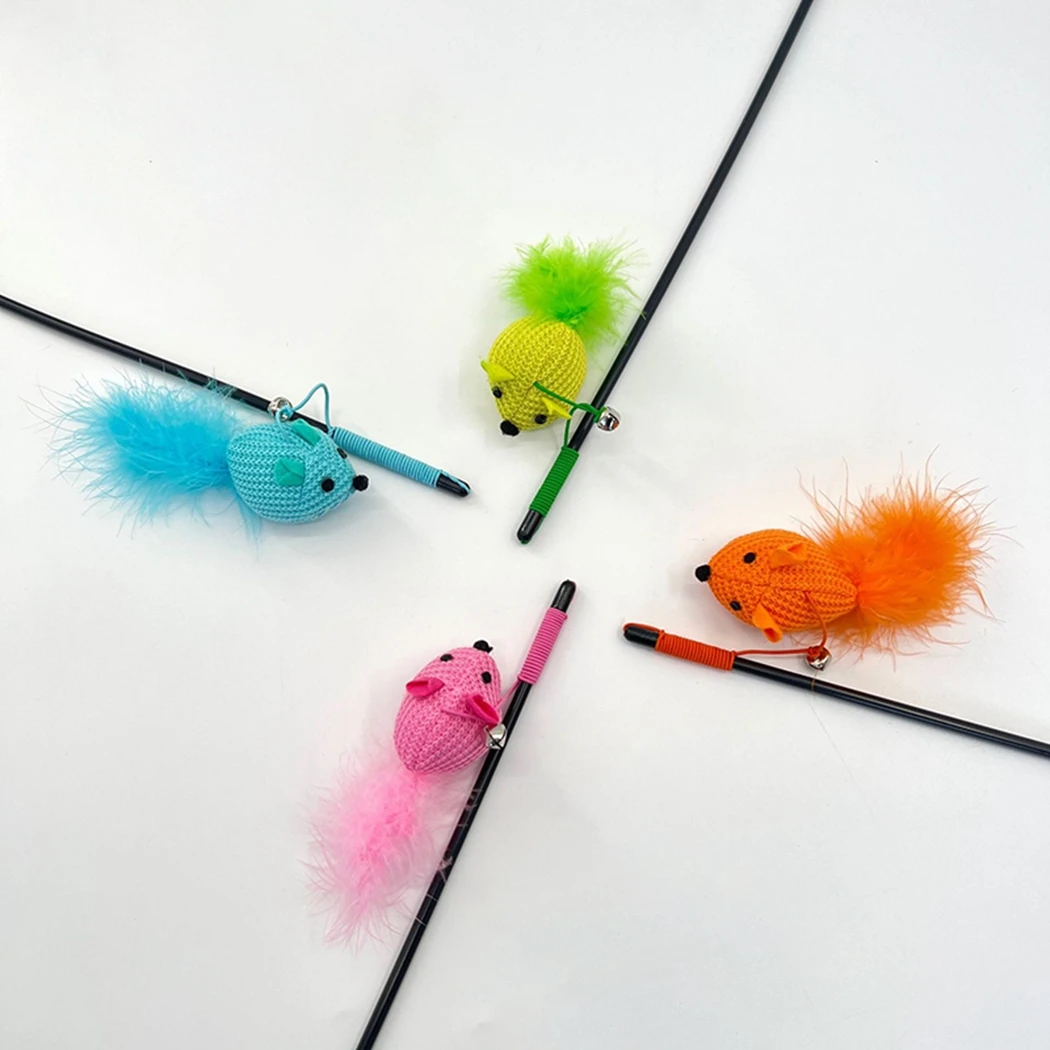 Cat Funny Feather Mouse Stick With Bell Playing Dangle Faux Mice Tease Fun Kitten Rod Toy Interactive Fishing Rod Wand For Cats