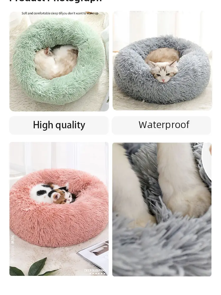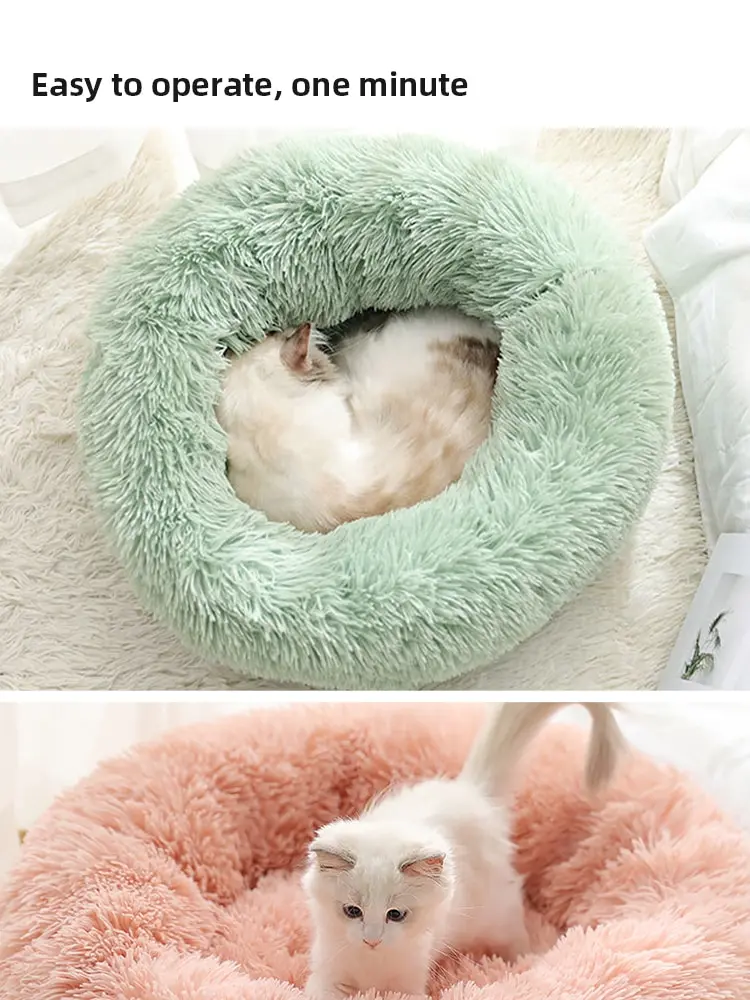 Cat Nest Round Soft Shaggy Mat Indoor Dog Cat Bed Pet Supplies Removable Machine Washable Pillow Bed for Small Pets