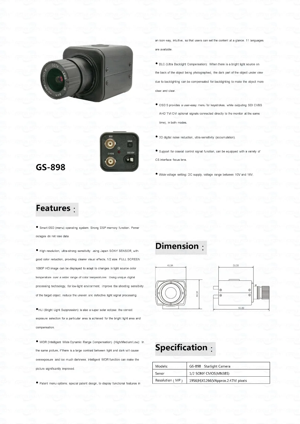 Color DSS:0.00017LUX,BW DSS:0.00008LUX