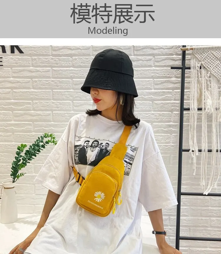 Chest Bag Spring And Summer Creative Style Shoulder Sesame Street Wrinkled Chrysanthemum Wear Resistant Messenger