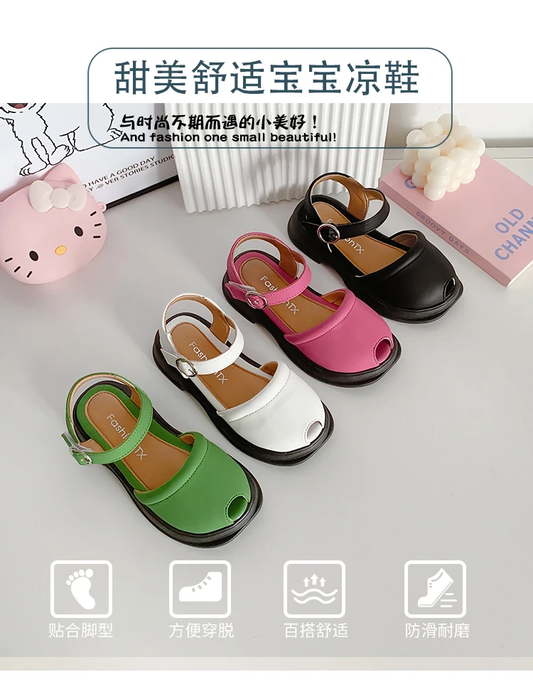 Children's Sandals Solid Color Girls' European and American Pink Simple and Non Slip 2023 Versatile Soft Multi Color Kids Shoes