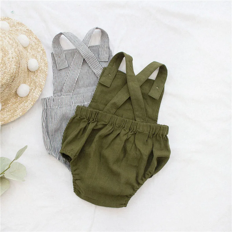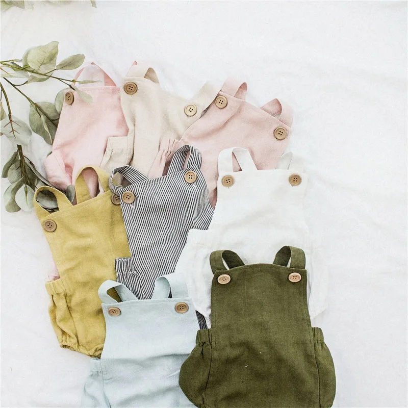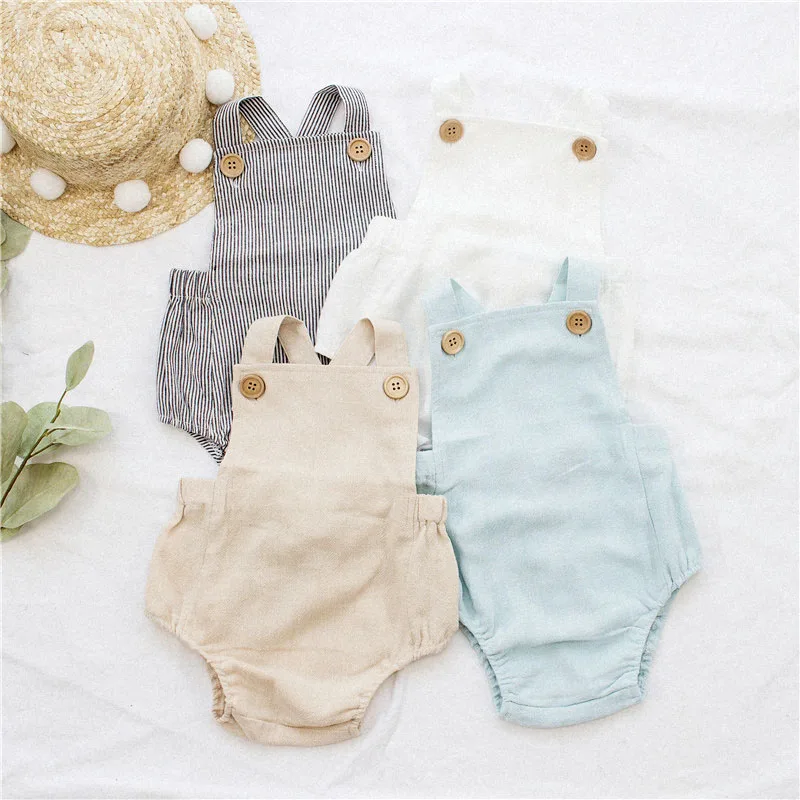 Clearance !!! Baby Summer Sleelvess Romper For Boy and Girl Cotton Linen Made Quality Infant Onesie One-piece Baby Wears