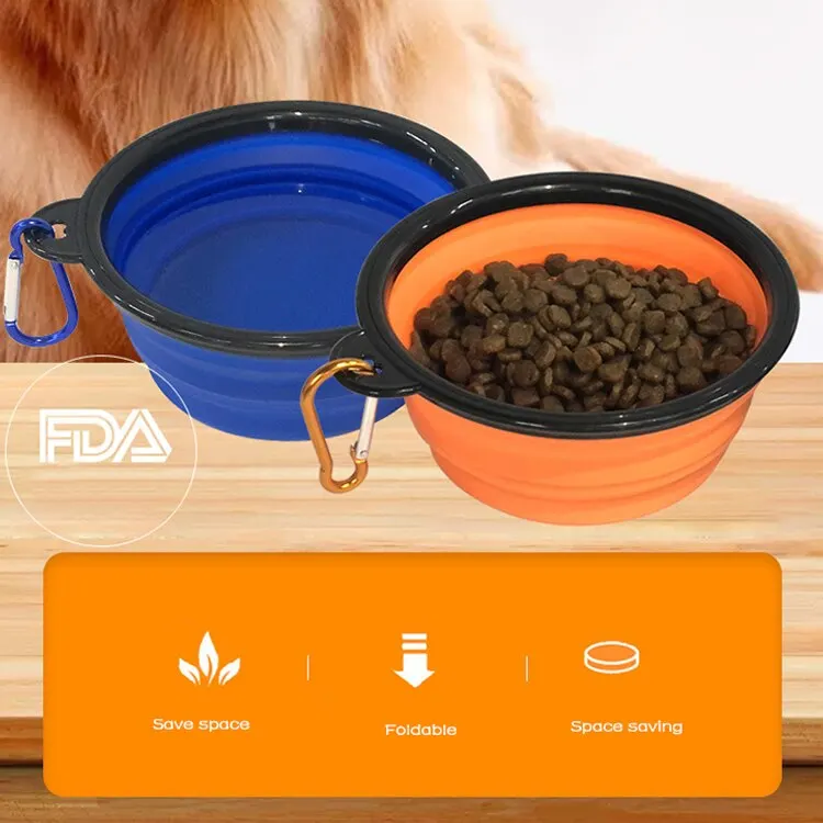 Collapsible Dog 1000ml Large Folding Silicone Bowl Pet Outdoor Travel Portable Puppy Food Container Feeder Dish With Carabiner