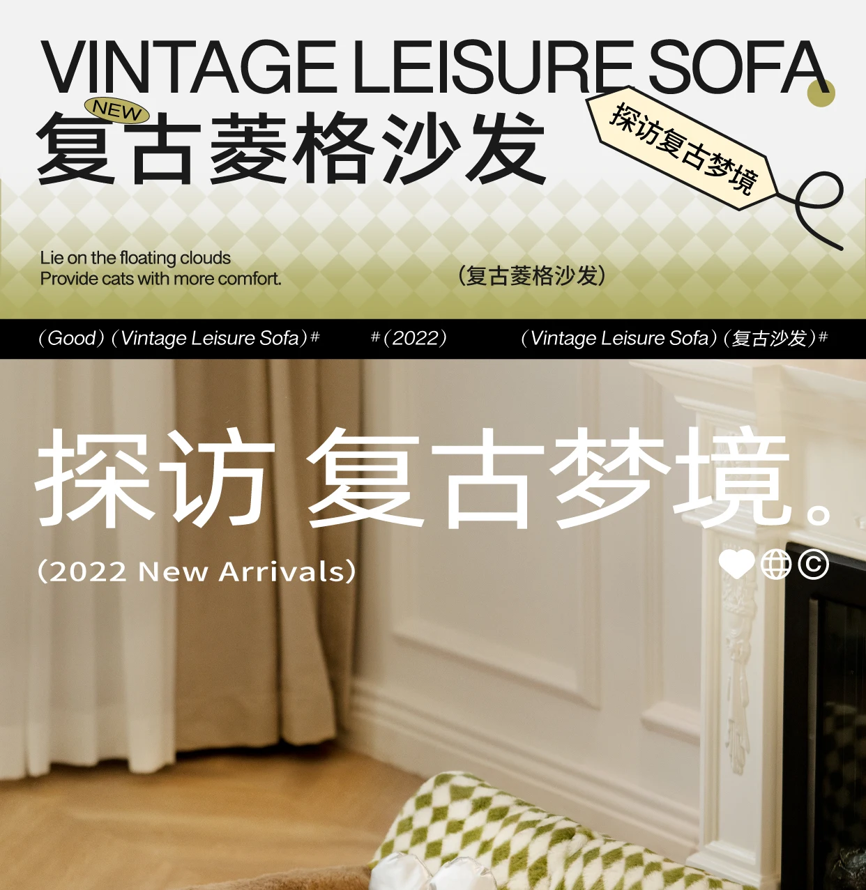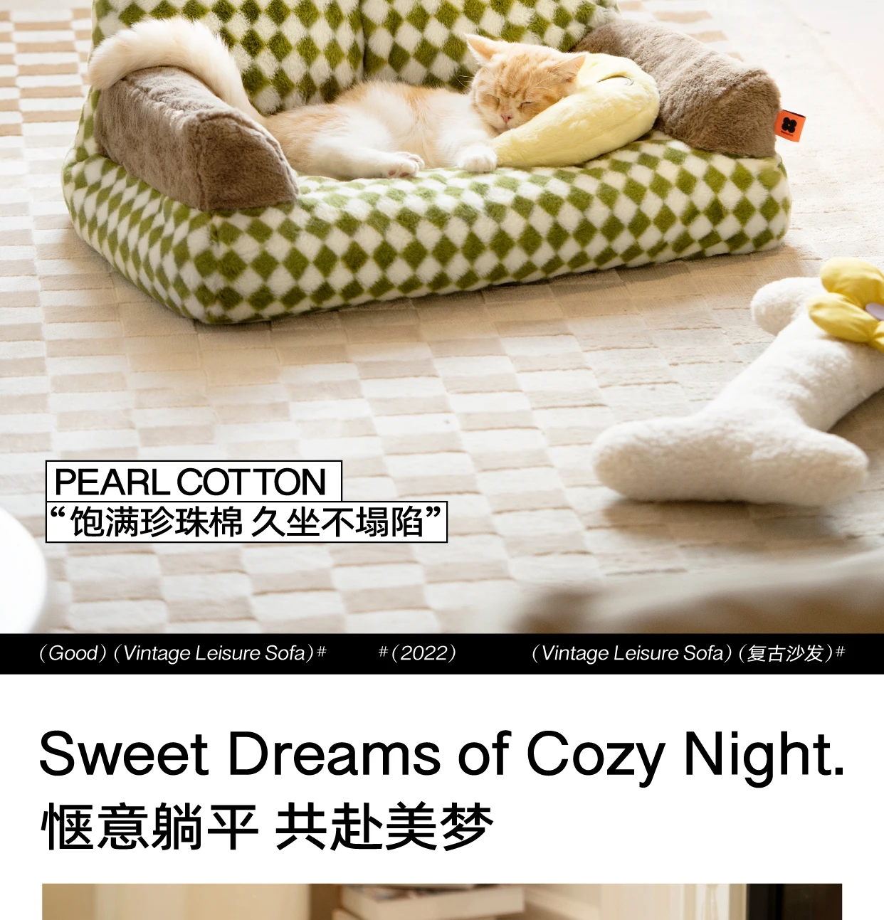Comfortable Vintage Cat Sofa Pet Bed Sleeping Pad For Cats Cosy Puppy Bed 66cm long by 37cm wide