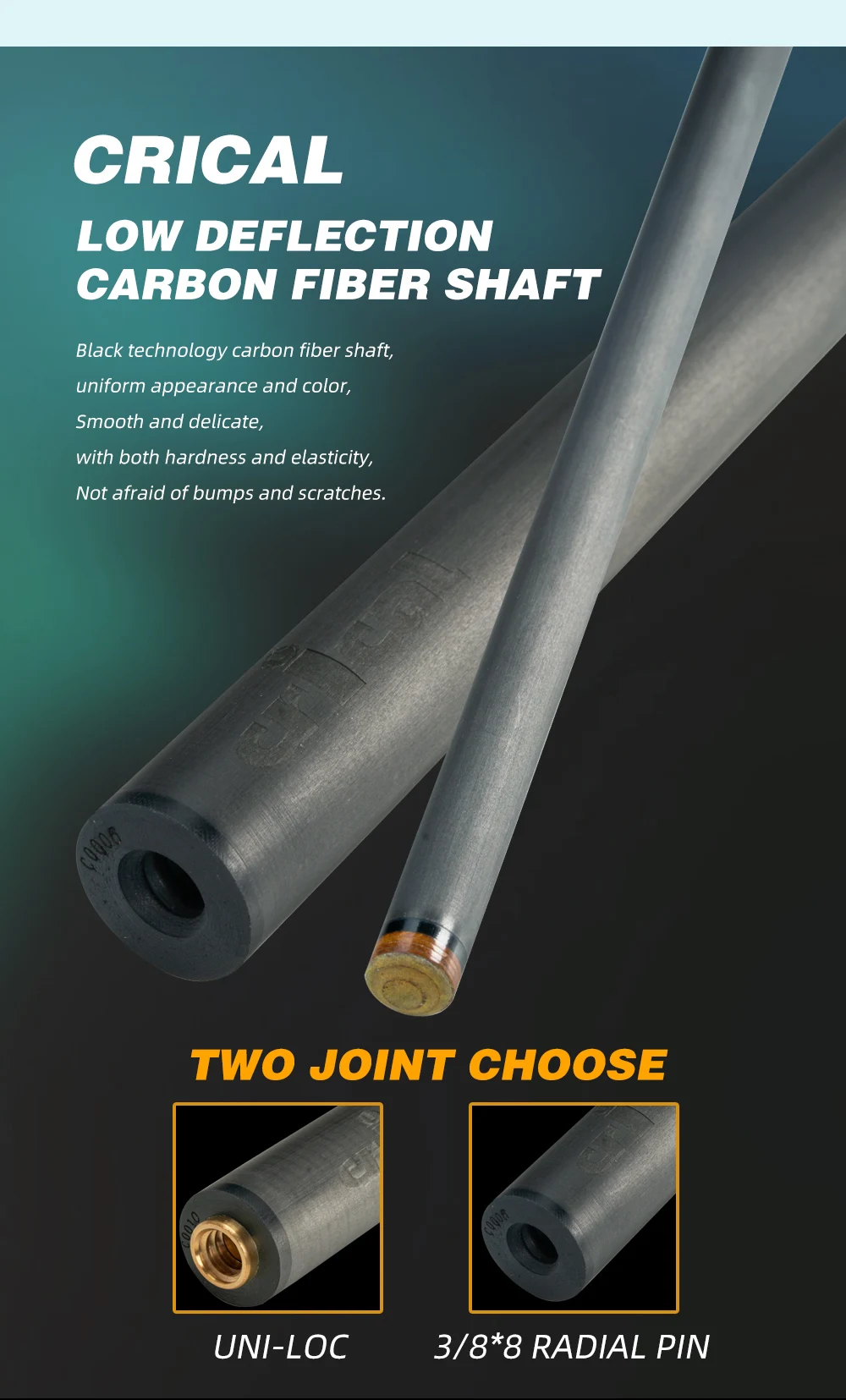 CRICAL Carbon Fiber Pool Cue Billiards 11.5/12.5mm Tip Stick Uniloc 3/8*8 Radial Pin Joint Technology Professional Billiard Cue