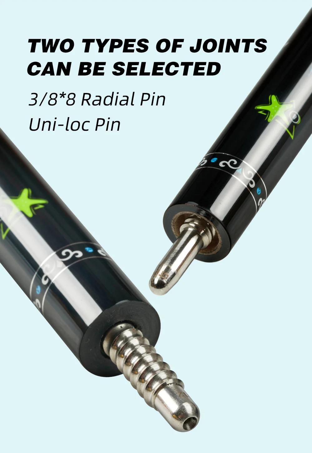 • [Cue Joint] Stainless steel club joint. There are two types of joints available: Uni-LOC Pin and 3/8*8 Radial Pin. Fits most American Radial Pin Cue and PREOATOR Uniloc Quick Joint.