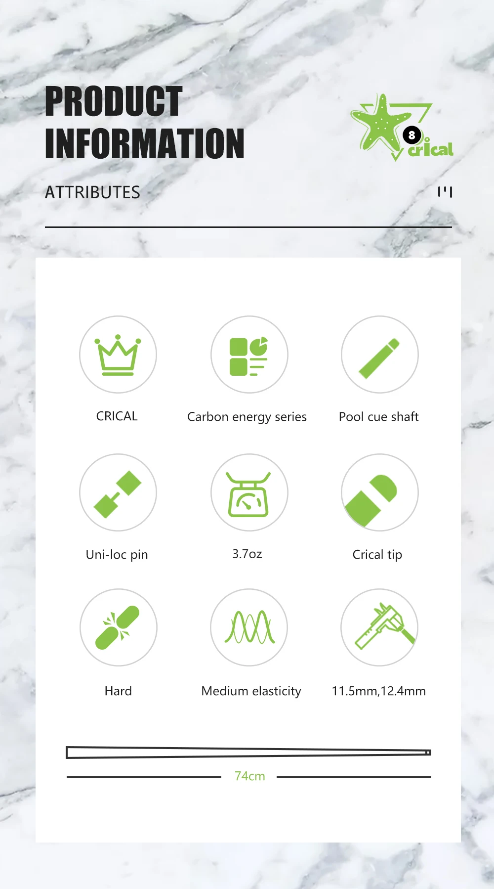CRICAL Carbon Shaft Pool Cue Carbon Fiber Single Shaft12.4/11.5mm CRICAL Tip Uniloc Joint Technology Cue Stick Kit Singe Shaft