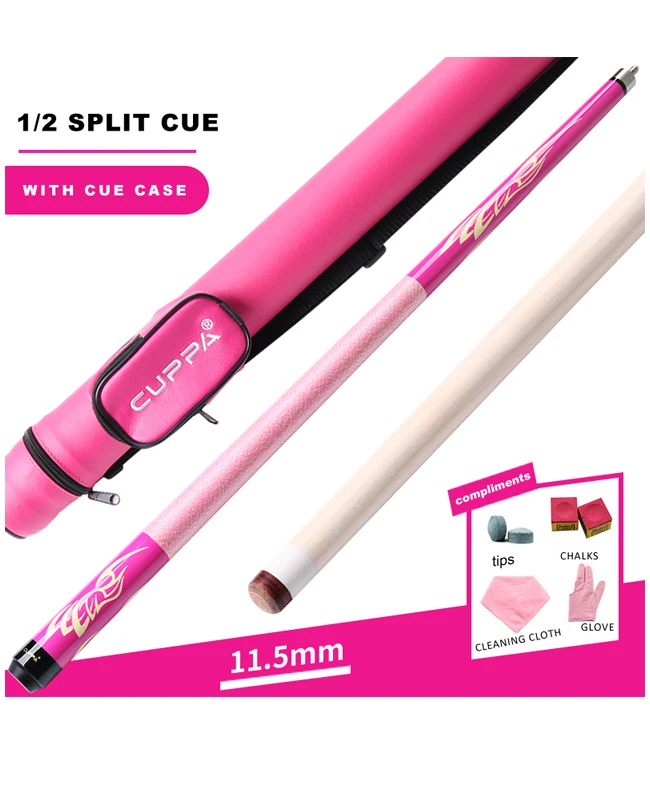 CUPPA Pool Cue Billiard cue Maple Shaft Stick With Case Linen Wrap pink black white