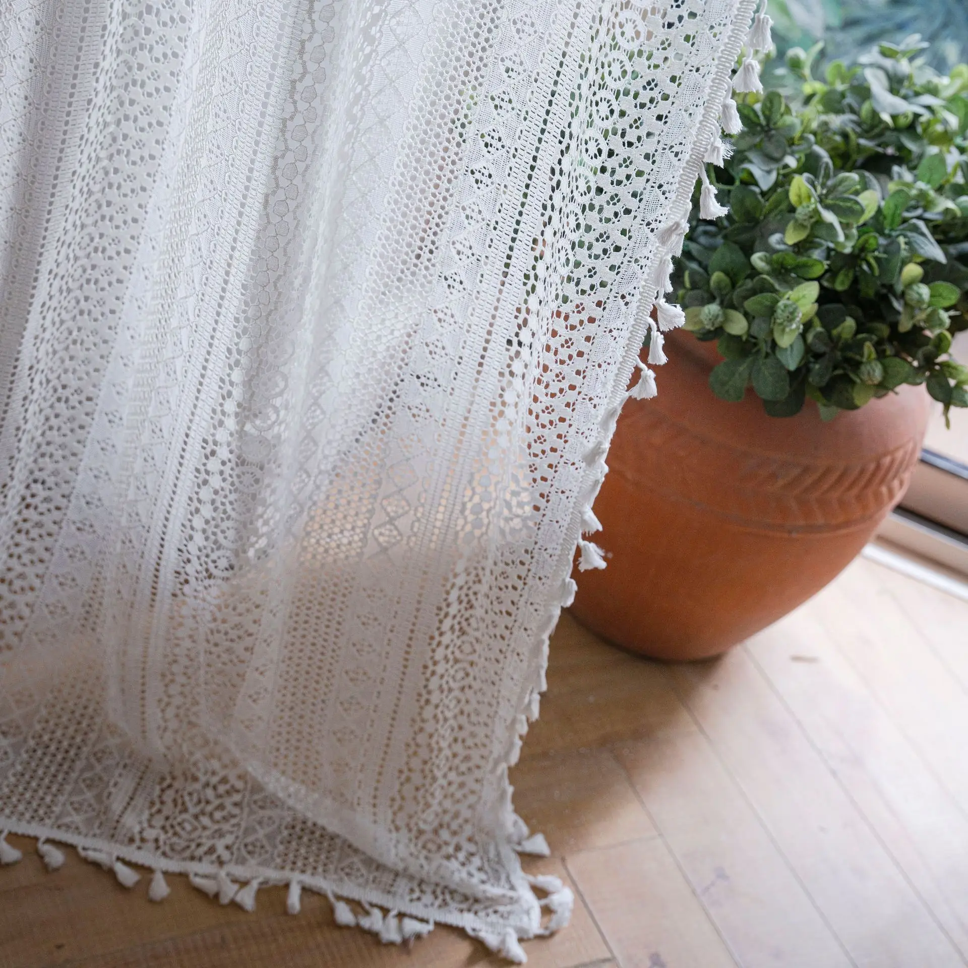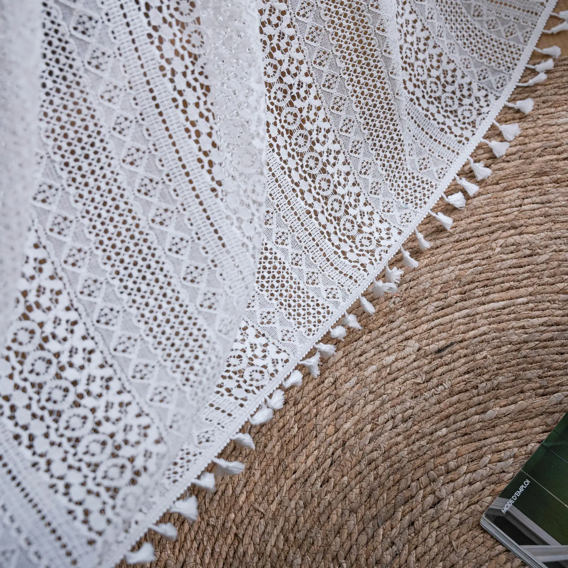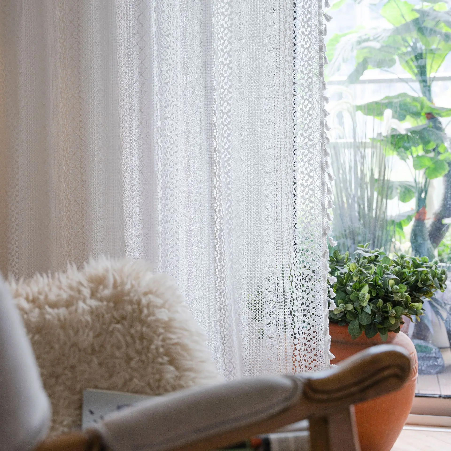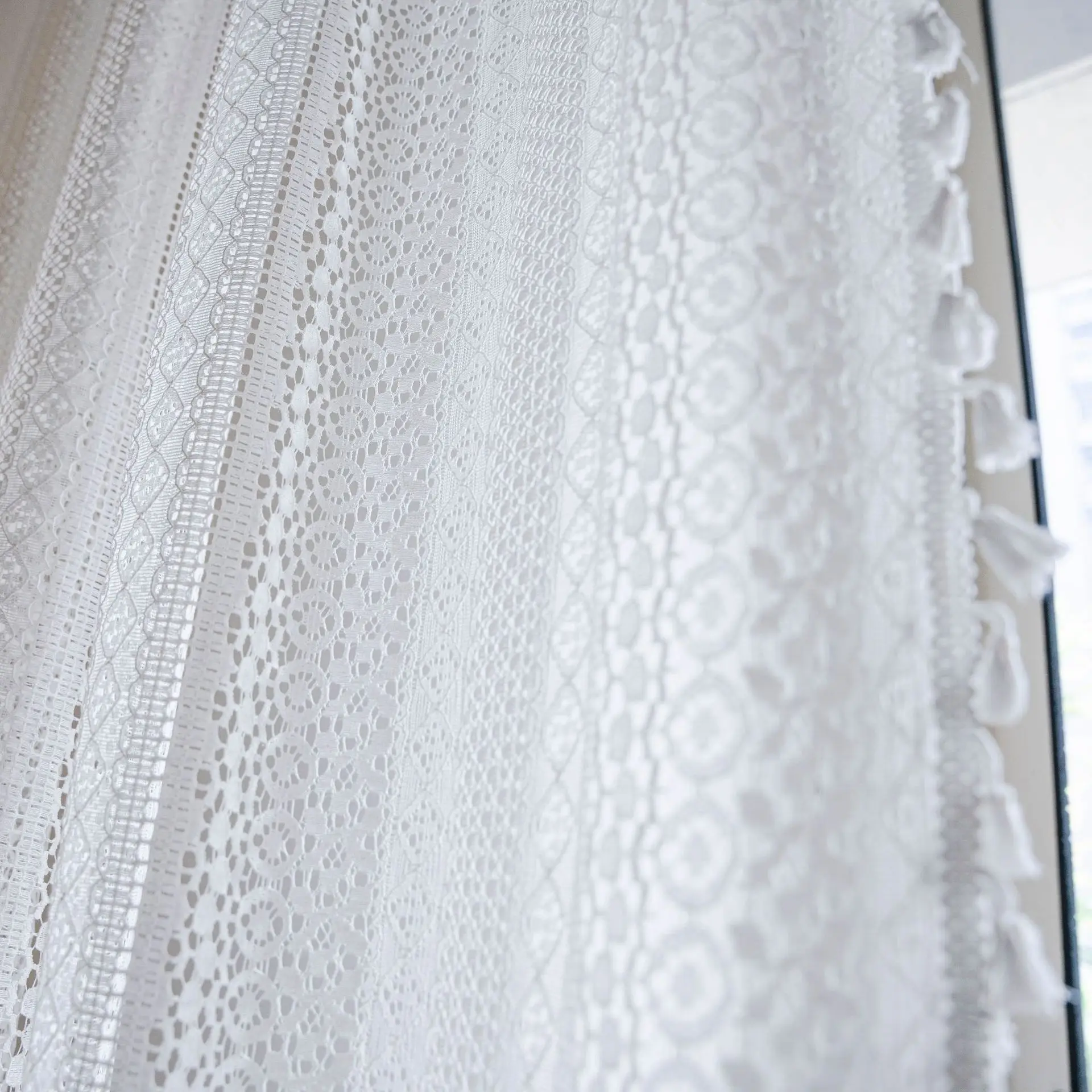 Curtains for Home Decoratation American Style White Crochet Hollow Tassel Blackout Bedroom Kitchen Living Room Window Curtain