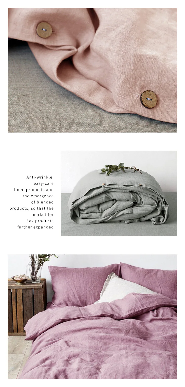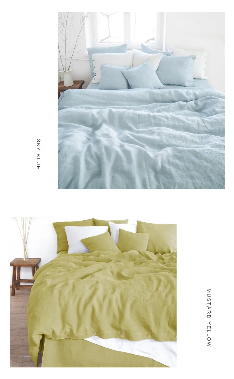 Customized 100% Natural Linen Bedding Set Handmade Duvet Cover Flat Bed Sheet And Pillowcase Table Runner Napkins