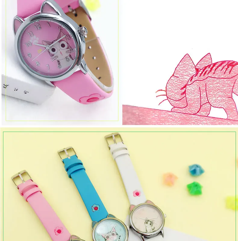 Cute Cheese Cat Pattern Kids Watch Quartz Analog Child Watches For Boys Girls Student Clock Gift Relogio Feminino