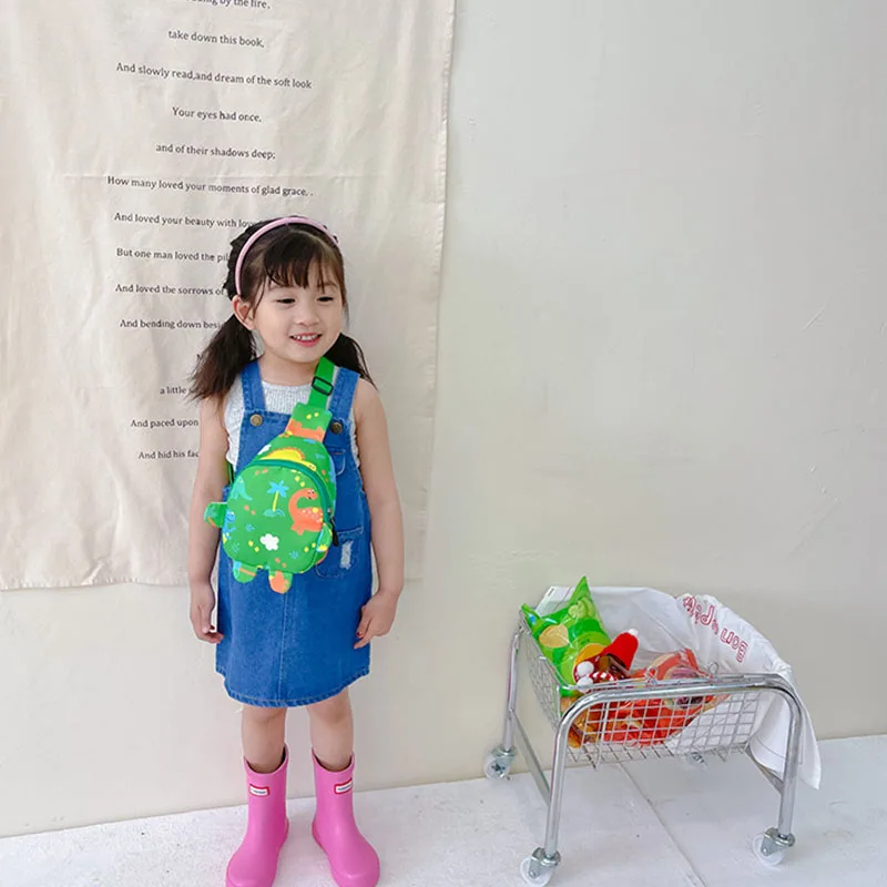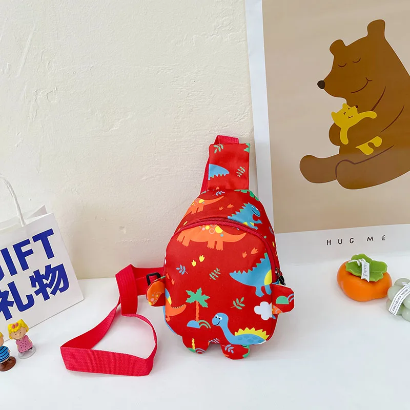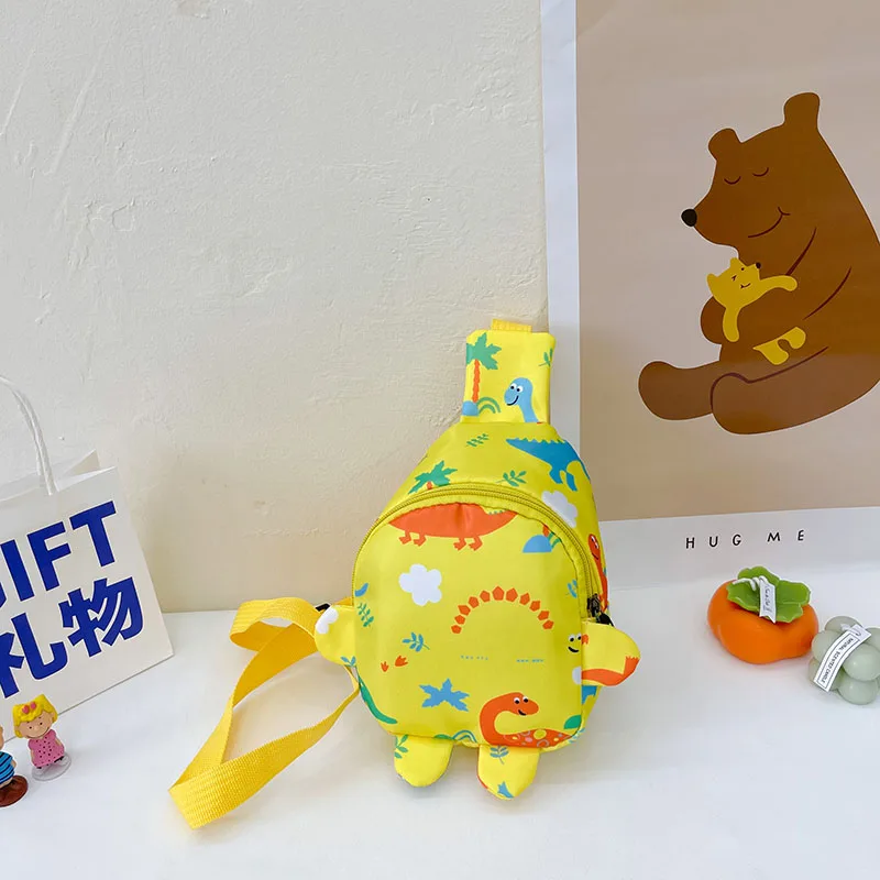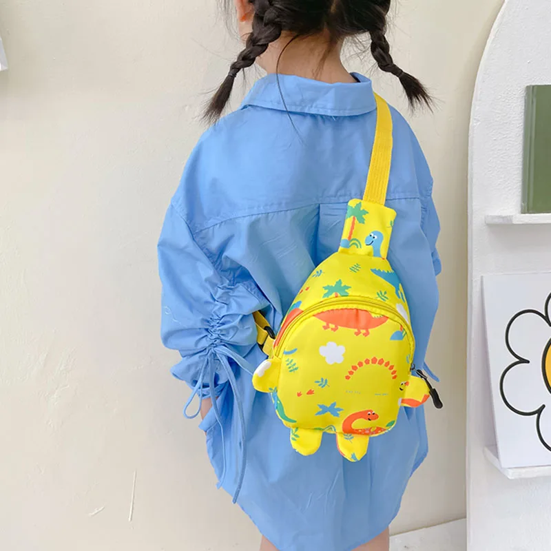 Cute Dinosaur Horn Children Chest Bags Boys Girls Travel Crossbody Bag Adjustable Harness Cartoon Animals Print Kids Backpacks