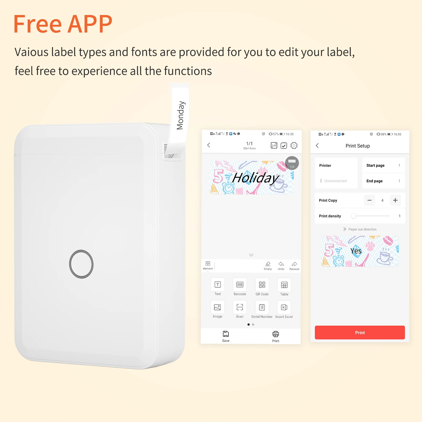 D110 Portable Thermal Label Printer Easy To Use Wireless Bluetooth Smart Personalized Mark Device for Home Office Warehouse Etc