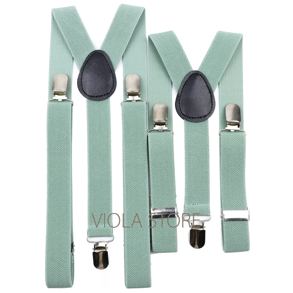 Dad Son New Sage Green Salmon Soild Elkastic Suspender Set Colorful Brace Men Women Kid Adjustable Wedding Party Daily Accessory