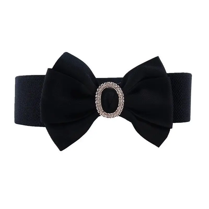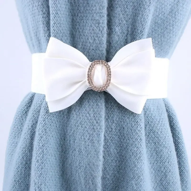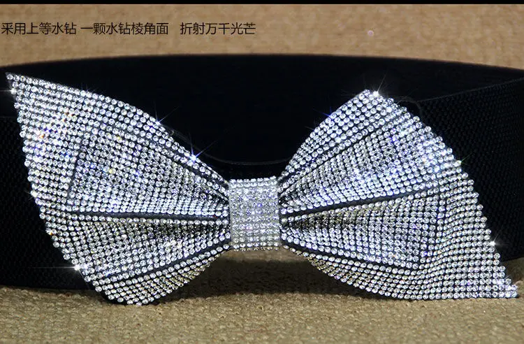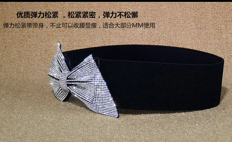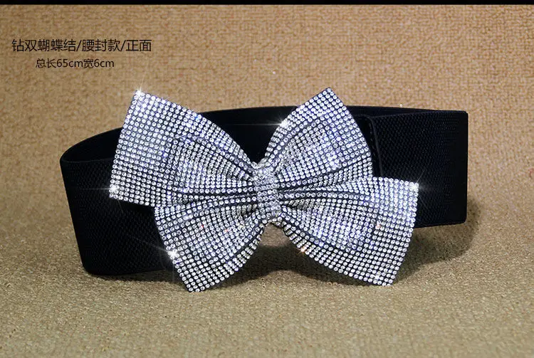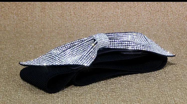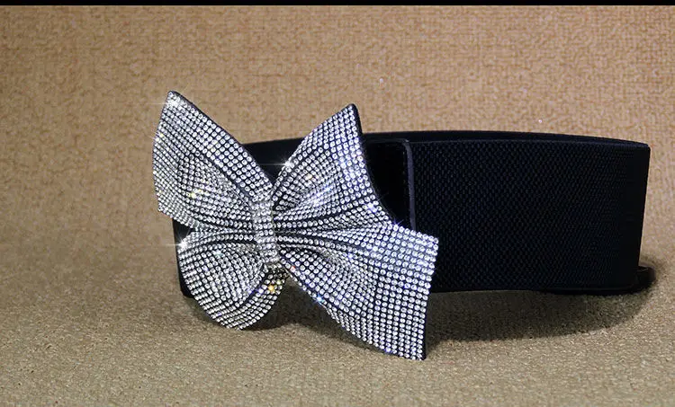 Diamond Glitter Bow Tie Waistbelt for Girls with Bowknot Rhinestone Wide Waist Belt for Dress Match Elastic Waist Seal