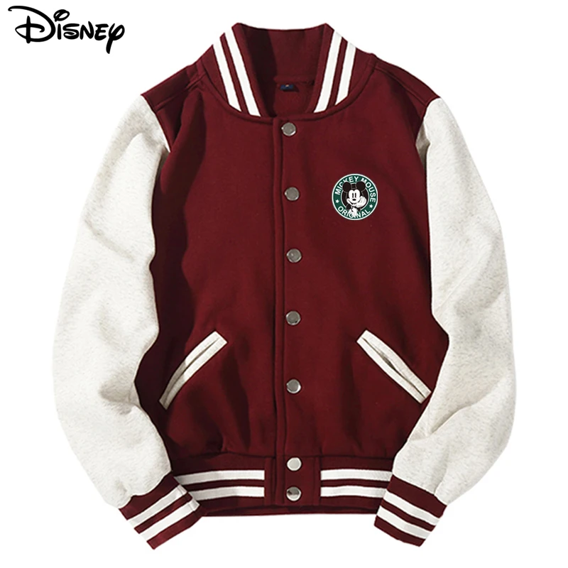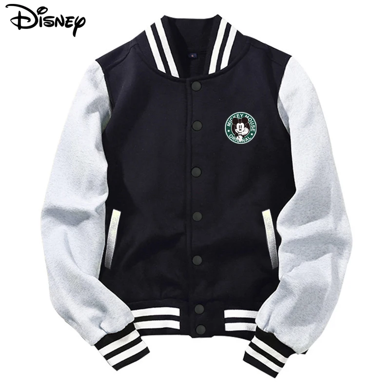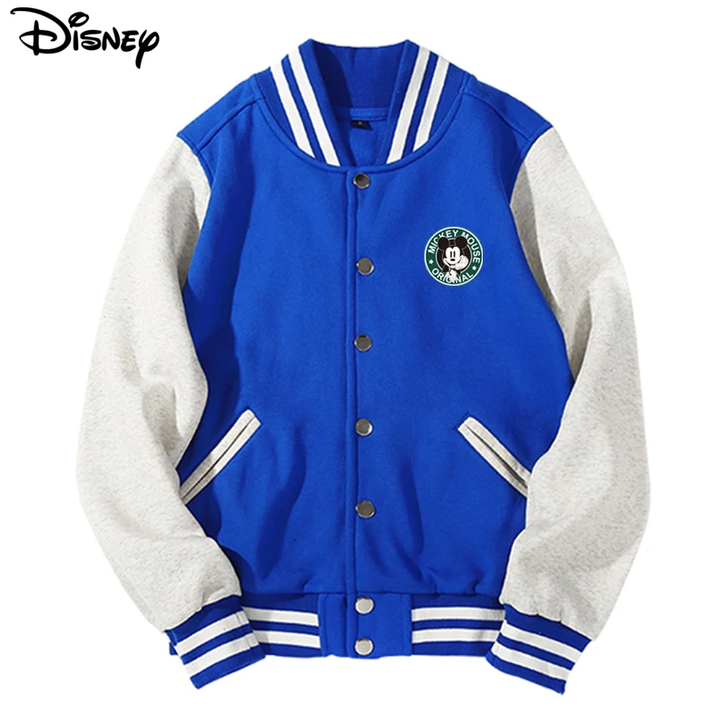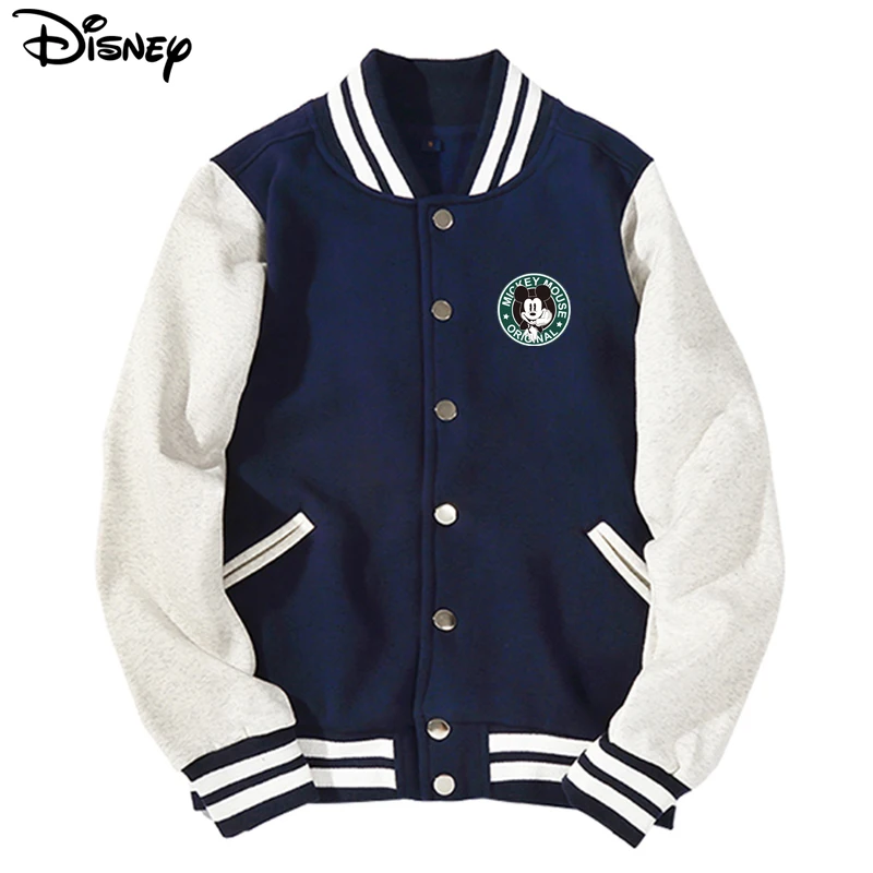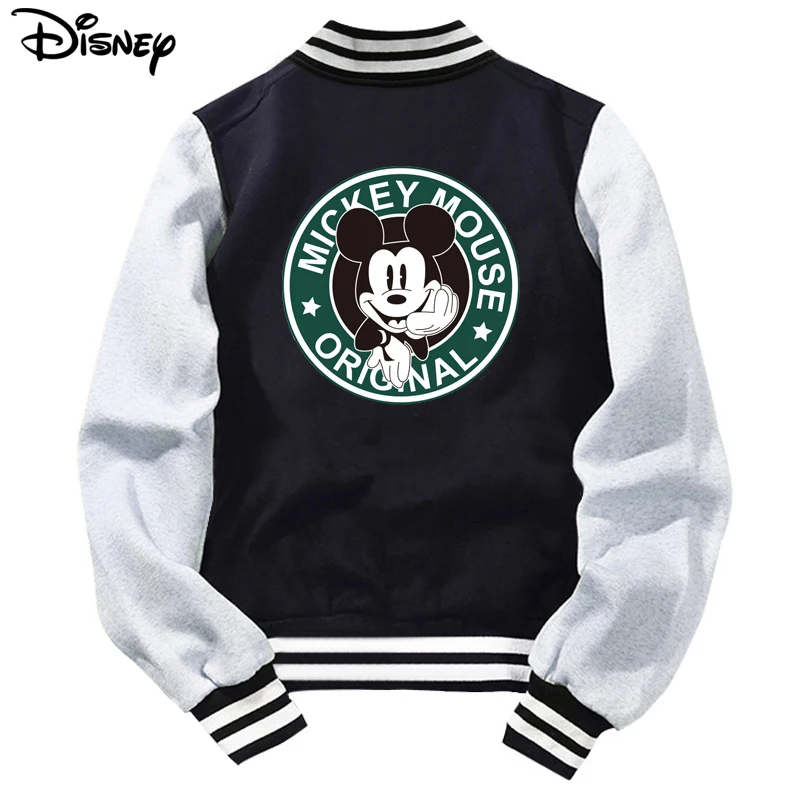 Disney 2022 New Arrival Rib Sleeve Cotton Top Fashion Logo Mickey Mouse Print Casual Bomber Baseball Jacket Loose Cardigan Coat
