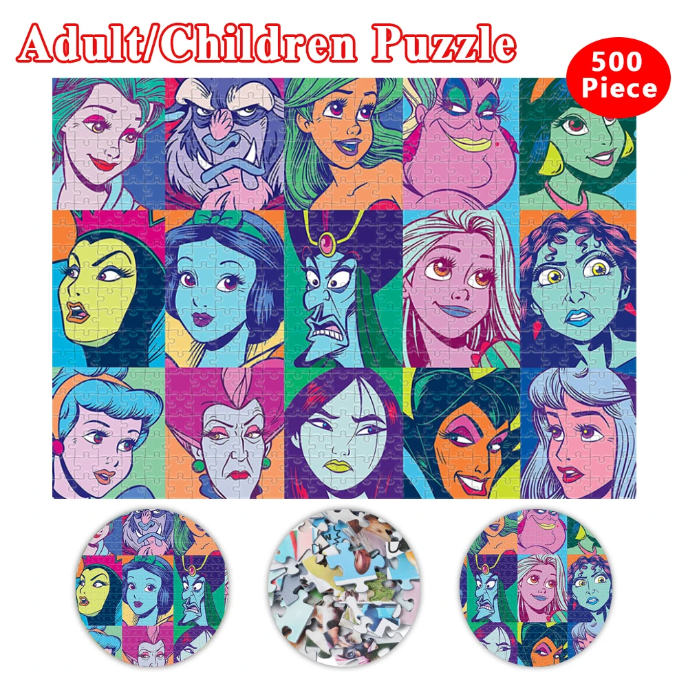 Disney Princess Jigsaw Puzzle 35/300/500/1000 Pieces Cartoon Jigsaw Puzzle Disney Villains Educational Toys for Children Gifts