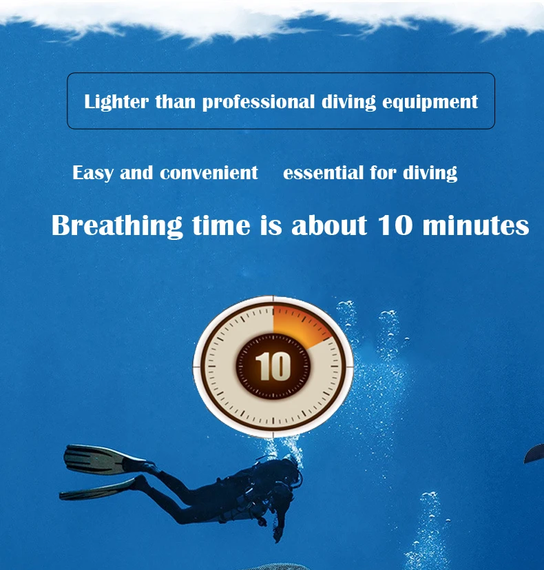 The underwater use time of this product is related to water pressure and personal fitness. The higher the water pressure, the shorter the usable time, and the longer the underwater deflation time, the longer the use time. Professionals can use it for about 15 minutes.