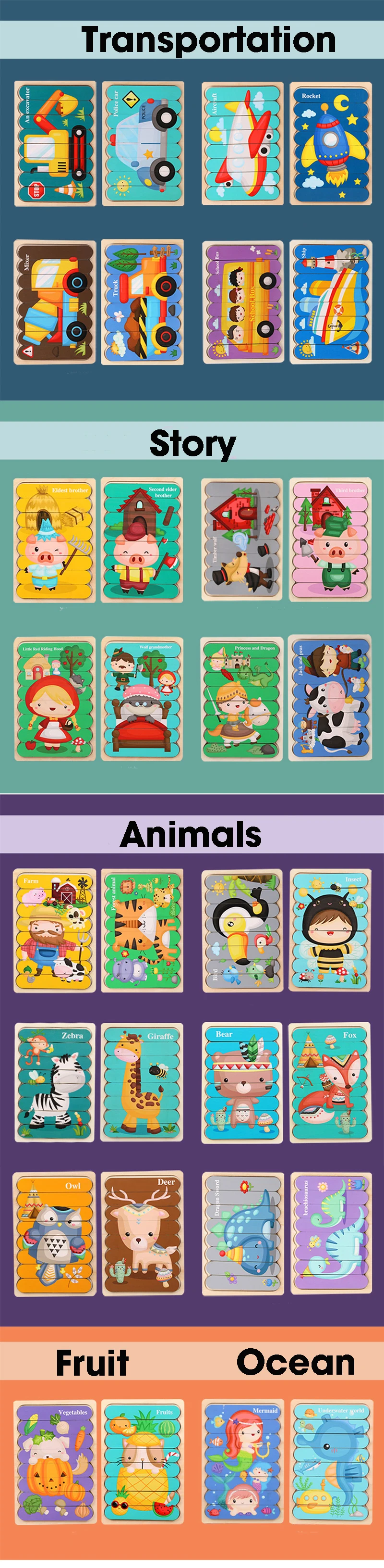 Double Sided Strip 3D Puzzles Baby Toy Wooden Montessori Materials Educational Toys For Children Large Bricks Kids Learning Toys