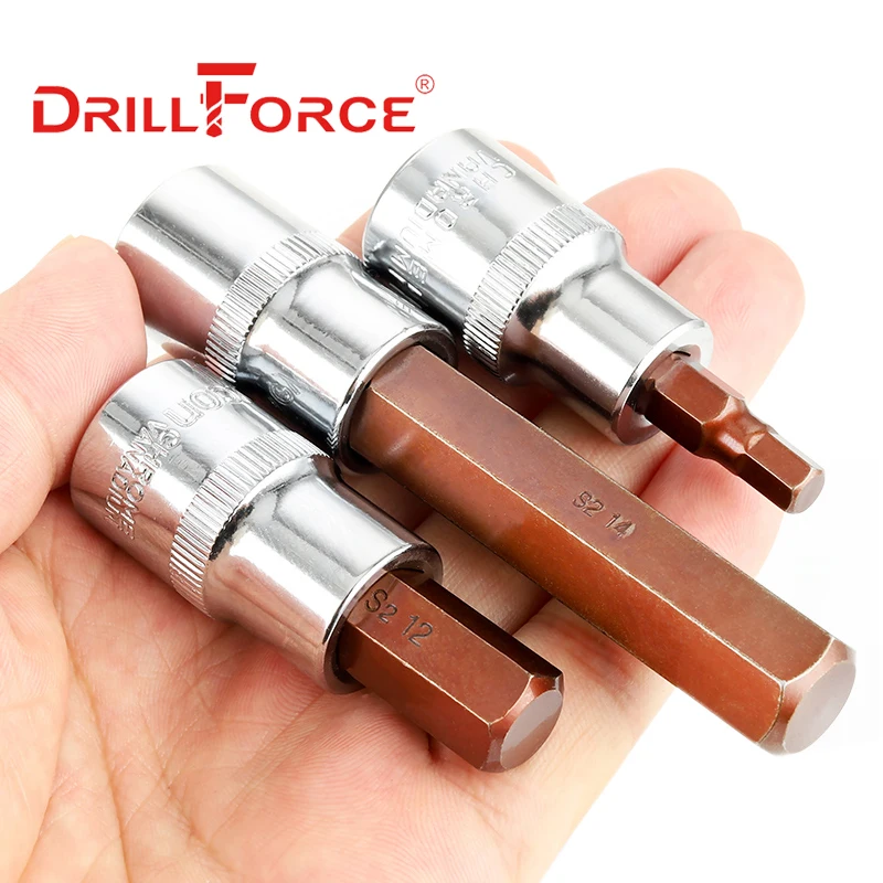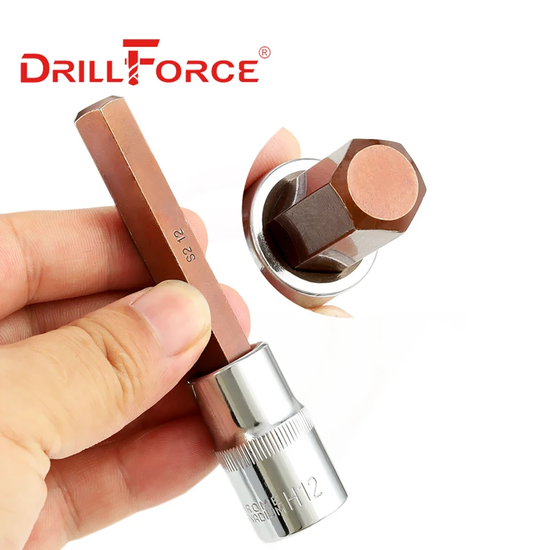 Drillforce 1/2" Drive Hexagon Socket Bit S2 Adapter Allen Key Wrench Home Repair Tools H4/H5/H6/H7/H8/H9/H10/H12/H14/H17/H19